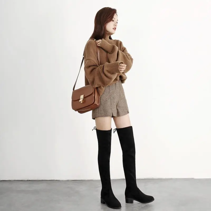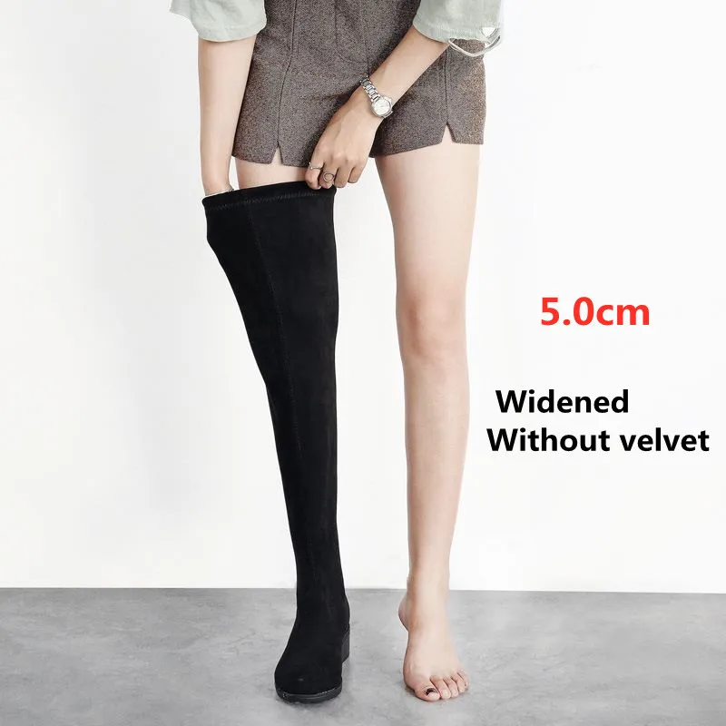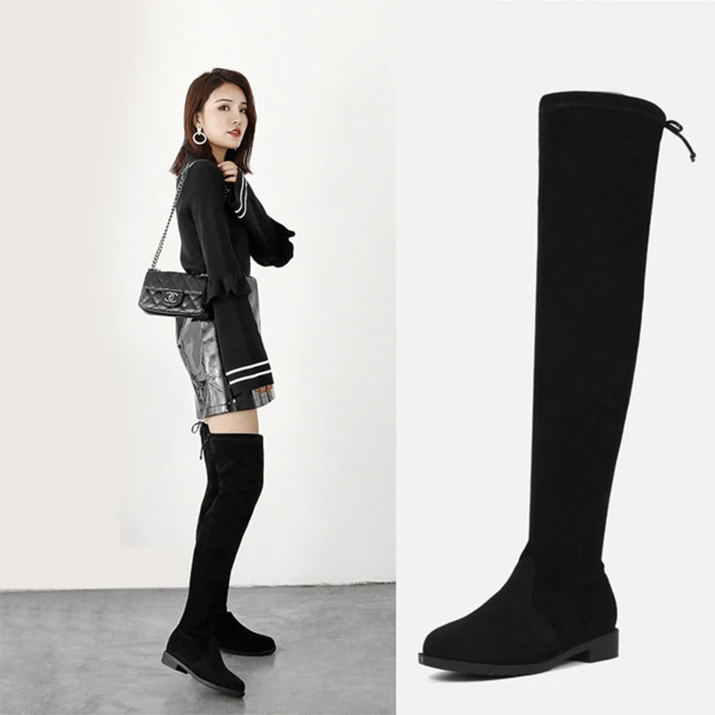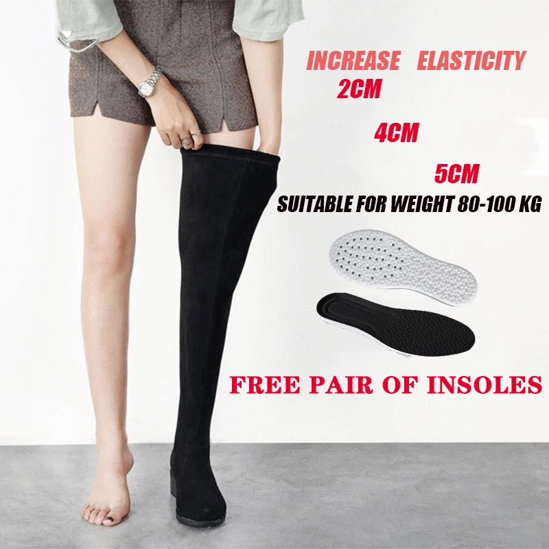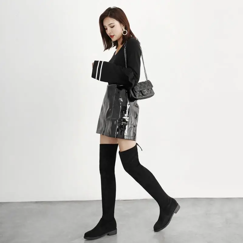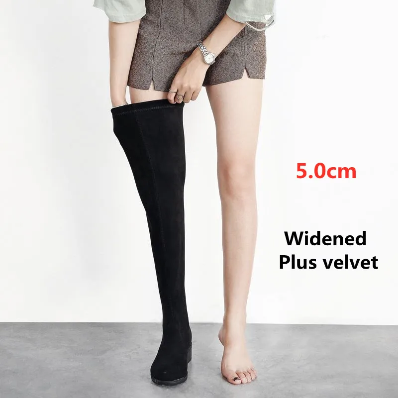 Женские ботинки; Женская обувь; Модные осенние облегающие высокие сапоги до бедра на плоской подошве; Сапоги на платформе с толстой подошвой без застежки на не сужающемся книзу массивном каблуке; Ботильоны; 45