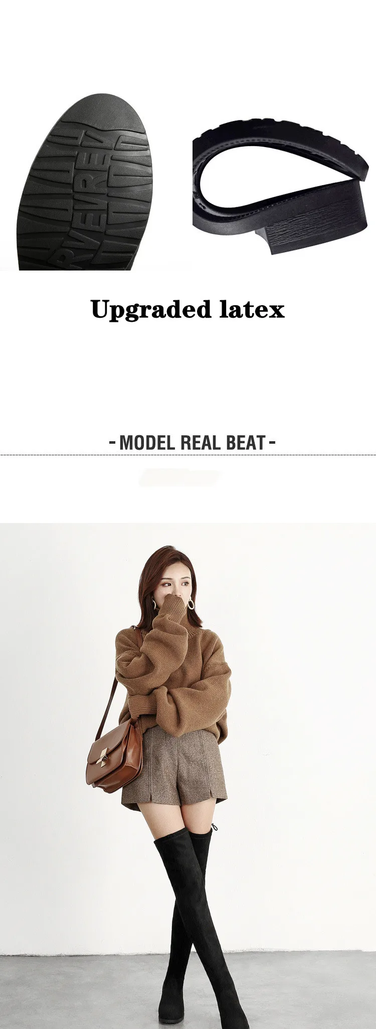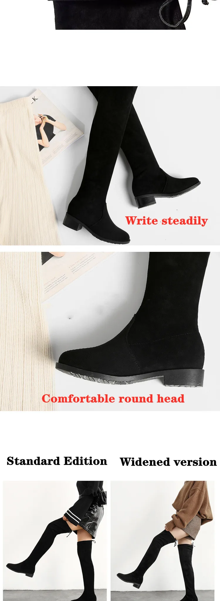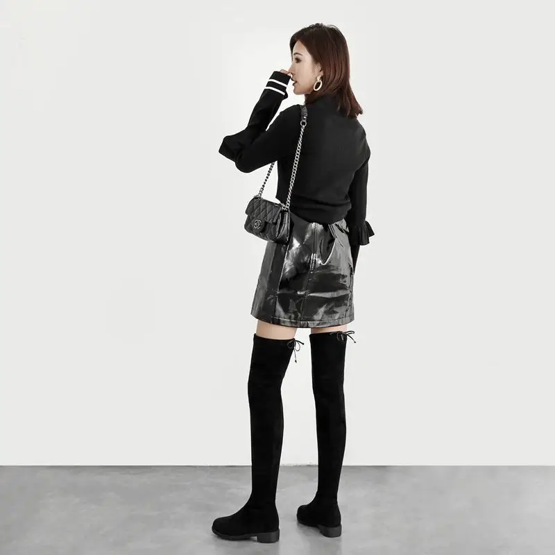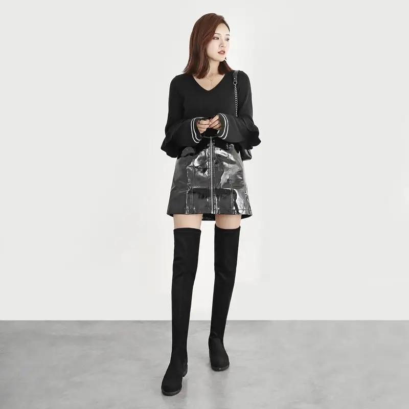Женские ботинки; Женская обувь; Модные осенние облегающие высокие сапоги до бедра на плоской подошве; Сапоги на платформе с толстой подошвой без застежки на не сужающемся книзу массивном каблуке; Ботильоны; 45