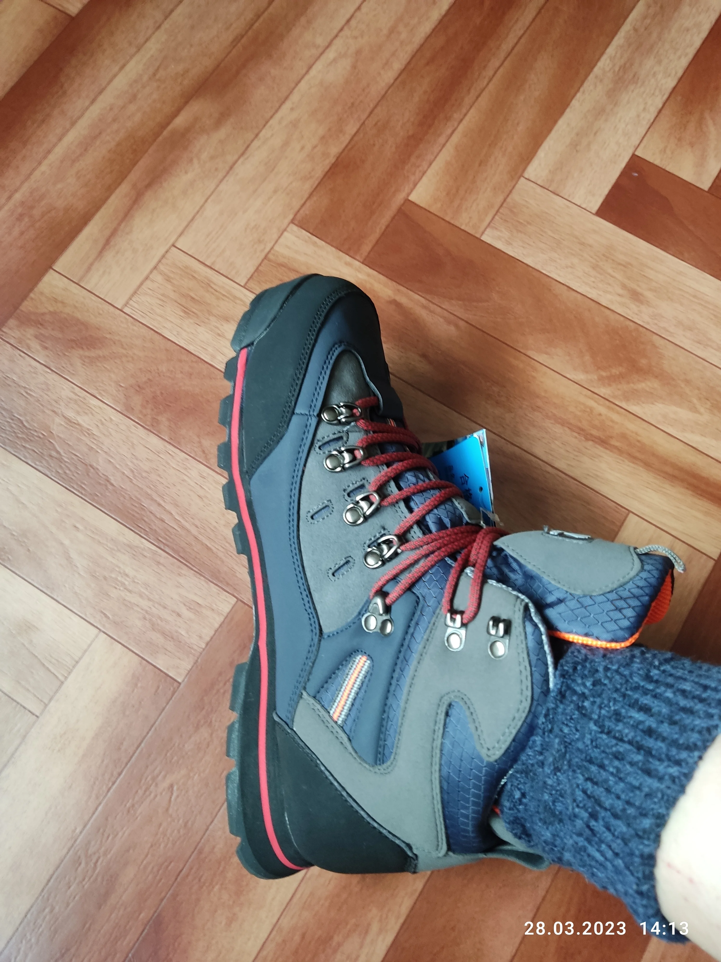 Ботинки из искусственной кожи. Размер чуть не по дошел, в подборе размера указана стелька 28 см под 46 размер. у меня стелька 28см размер европейский 44. По факту стелька 28 см размер европейский скорее всего 45-46. Думаю на мой 43 нужно брать (для города) 44, для гор 45. Продавец очень контактный, я затупил с размером указал 40, продавец помог решить вопрос, размер пришел 46 тот что я хотел заказать.