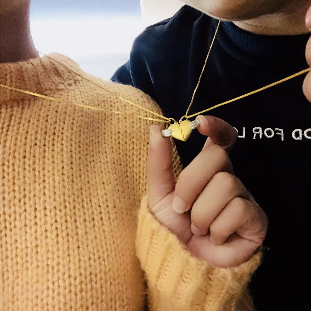 Магнитное ожерелье для влюбленных, 2 шт., кулон с разрывом в сердце...