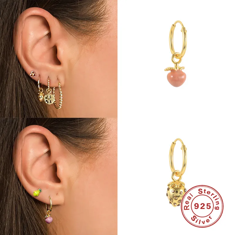 Женские эмалированные серьги в виде фруктов, серебро 925 пробы