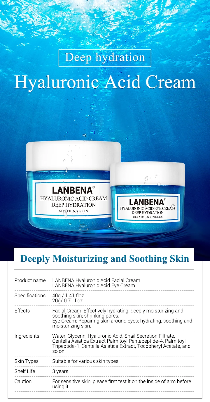 Глубокое увлажнениеКрем с гиалуроновой кислотойГлубоко увлажняет и успокаивает кожуНазвание продукта: LANBENA Гиалуроновая кислота крем для лица LANBENA Гиалуроновая кислота крем для глаз характеристики: 40 г/1,41 floz 20 г/0,71 floz эффекты: крем для лица: эффективно увлажняет; Глубоко увлажняет и успокаивает кожу; сужение пор. Крем для глаз: восстанавливает кожу вокруг глаз; Увлажняет, успокаивает и увлажняет кожу. Ингредиенты: вода, глицерин, гиалуроновая кислота, фильтрат секреции улитки, экстракт центеллы азиатской Pentapeptide-4 пальмитоил, пальмитоил Tripeptide-1, экстракт центеллы азиатской, Токоферил ацетат и так далее. Типы кожи: подходит для различных типов кожи Срок годности: 3 года внимание: для чувствительной кожи, пожалуйста, сначала проверьте его на внутренней стороне руки перед использованием