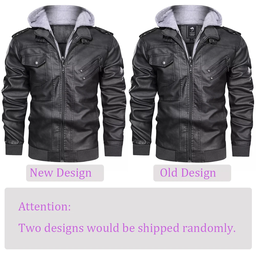 Мужская мотоциклетная куртка из искусственной кожи со съемным капюш...