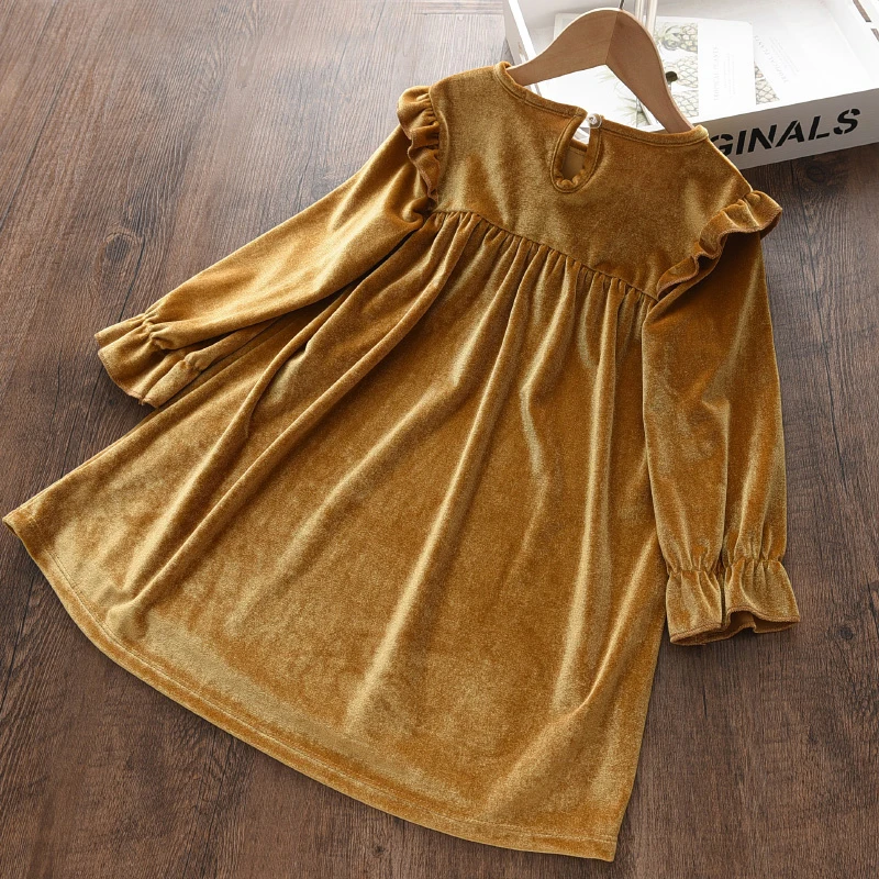 Menoeaплатье для маленьких девочек; Весеннее однотонное велюровое платье с длинными рукавами; Милая детская одежда; Платья принцессы с оборками; Vestidos