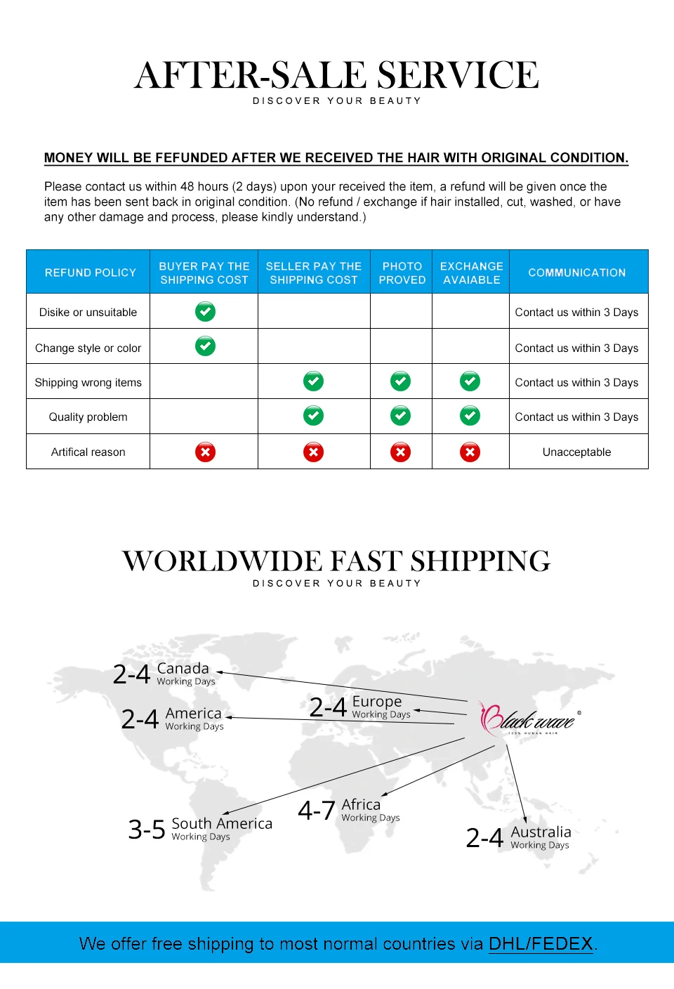 1. Название бренда: Blackwave2. Наращивание волос: кружевной передний/закрытый парик с естественной линией волос и волосами ребенка3. Длина: 08-40 дюймов в наличии, очень мягкая, здоровая и толстая4. Цвет волос: натуральный цвет5. Цвет кружева: Прозрачный6. Вес волос: 200-300 г/шт.7. Материал: 100% человеческие волосы без химической обработки, могут быть окрашены/выглажены в вашу пользу, отбеливатель/краситель друг8. Срок службы: более 24 месяцев9. Срок поставки: DHL/Fedex/обычно 3-7 рабочих дней10. Размер шапки: средний размер, подходит для большинства людей