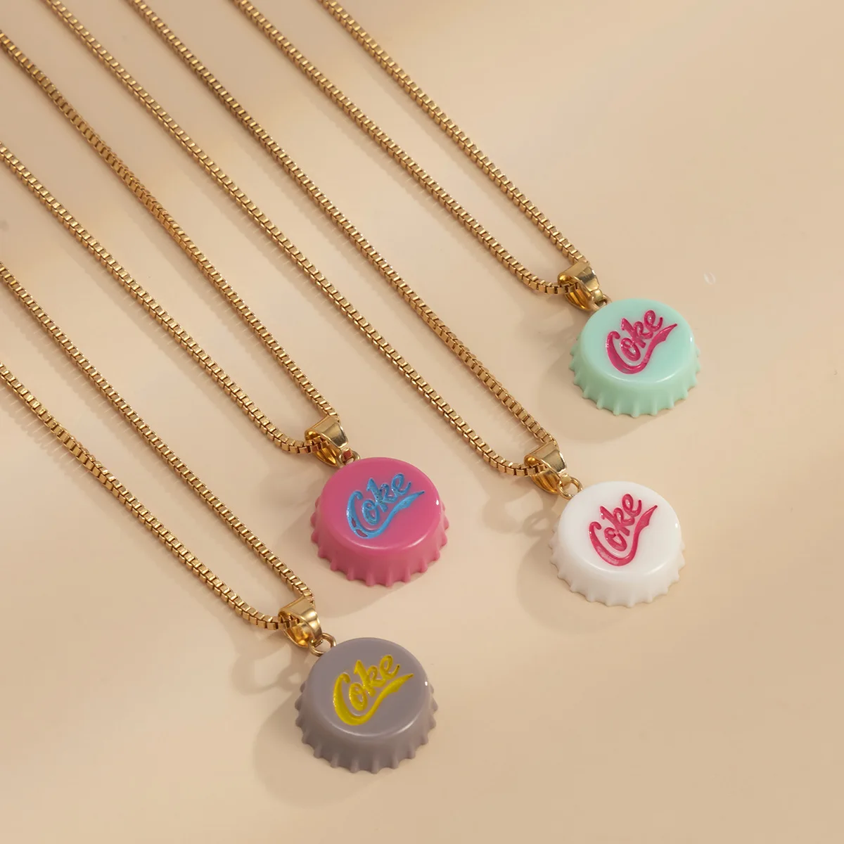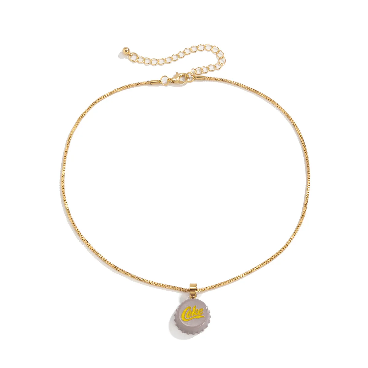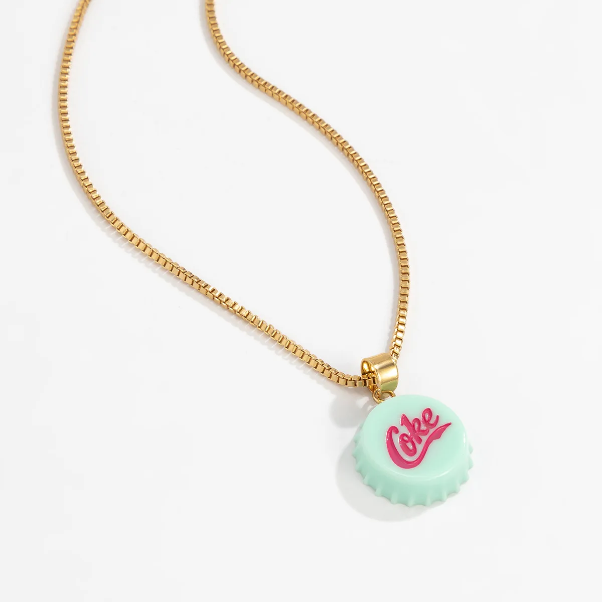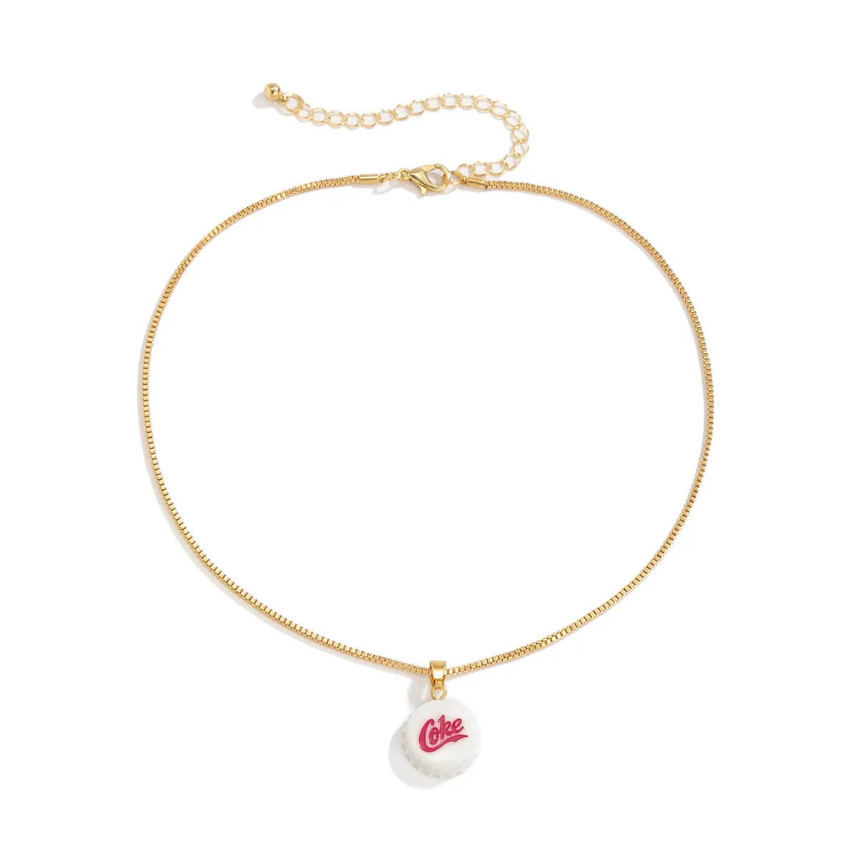 Новинка 2021, милая подвеска в виде бутылки колы, цепочка золотого цвета в коробке, ожерелье с забавным дизайном, ожерелье до ключиц для женщин и девушек, ювелирные изделия