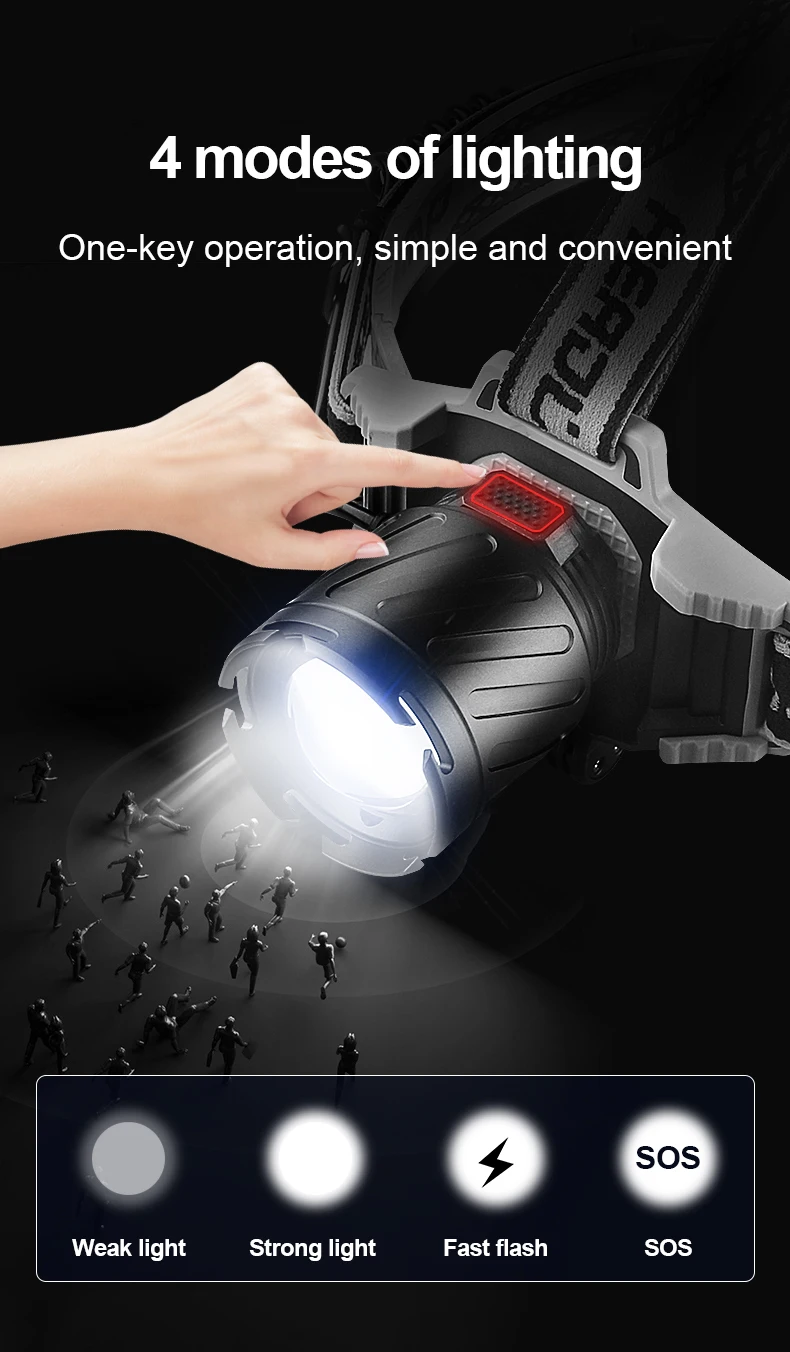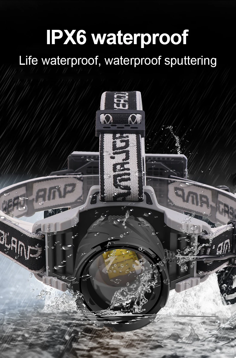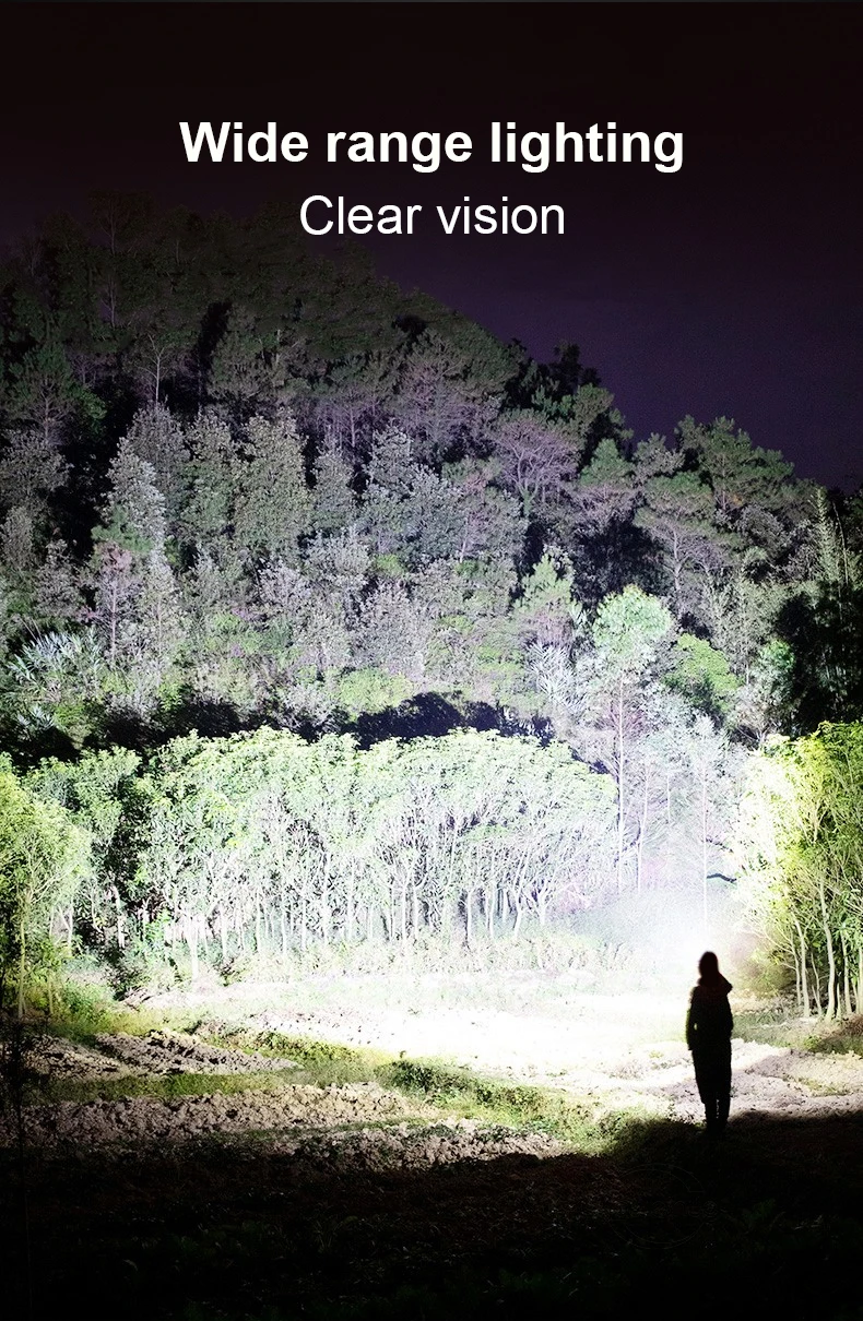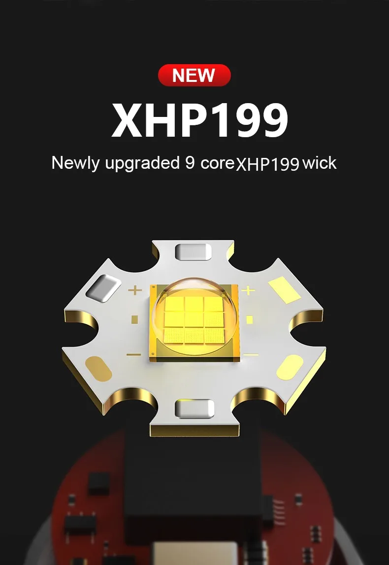 Речь идет о фаре Новейшие 9-core XHP199 светодиодный Ламповые бусины, а максимальная выходная мощность может достигать 1000000LM. Он идеально решает проблемы с яркостью и временем использования старых фар и приносит клиентам лучший опыт. Его можно использовать непрерывно в течение 6-12 часов на одной зарядке (задний предупреждающий светильник может работать непрерывно в течение одной недели). Подходит для ночной рыбалки и кемпинга. Это также идеальная наружная фара для ночного чтения, путешествий на открытом воздухе, приключений и спасения.