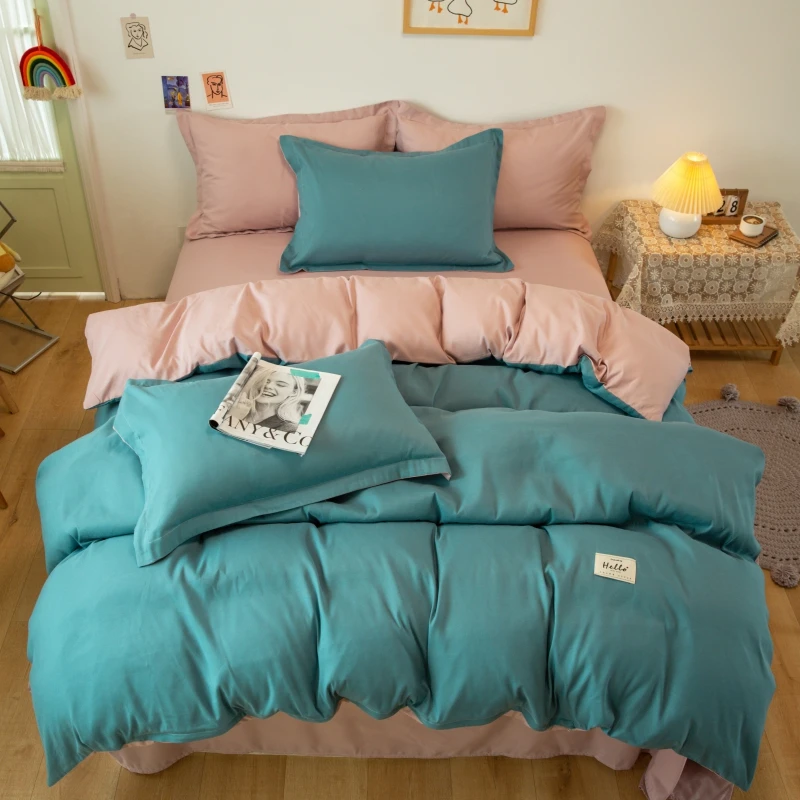 Одноцветный Комплект постельного белья для дома, спальни, цветочный пододеяльник