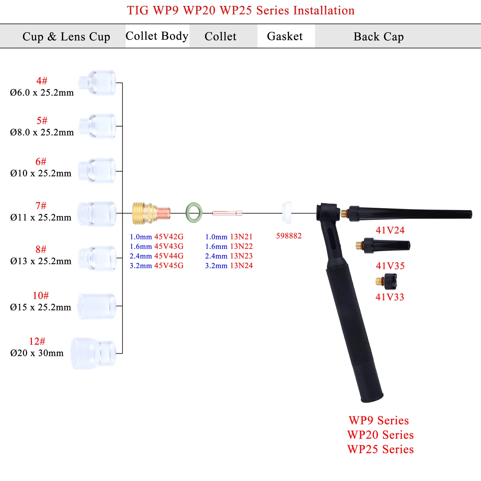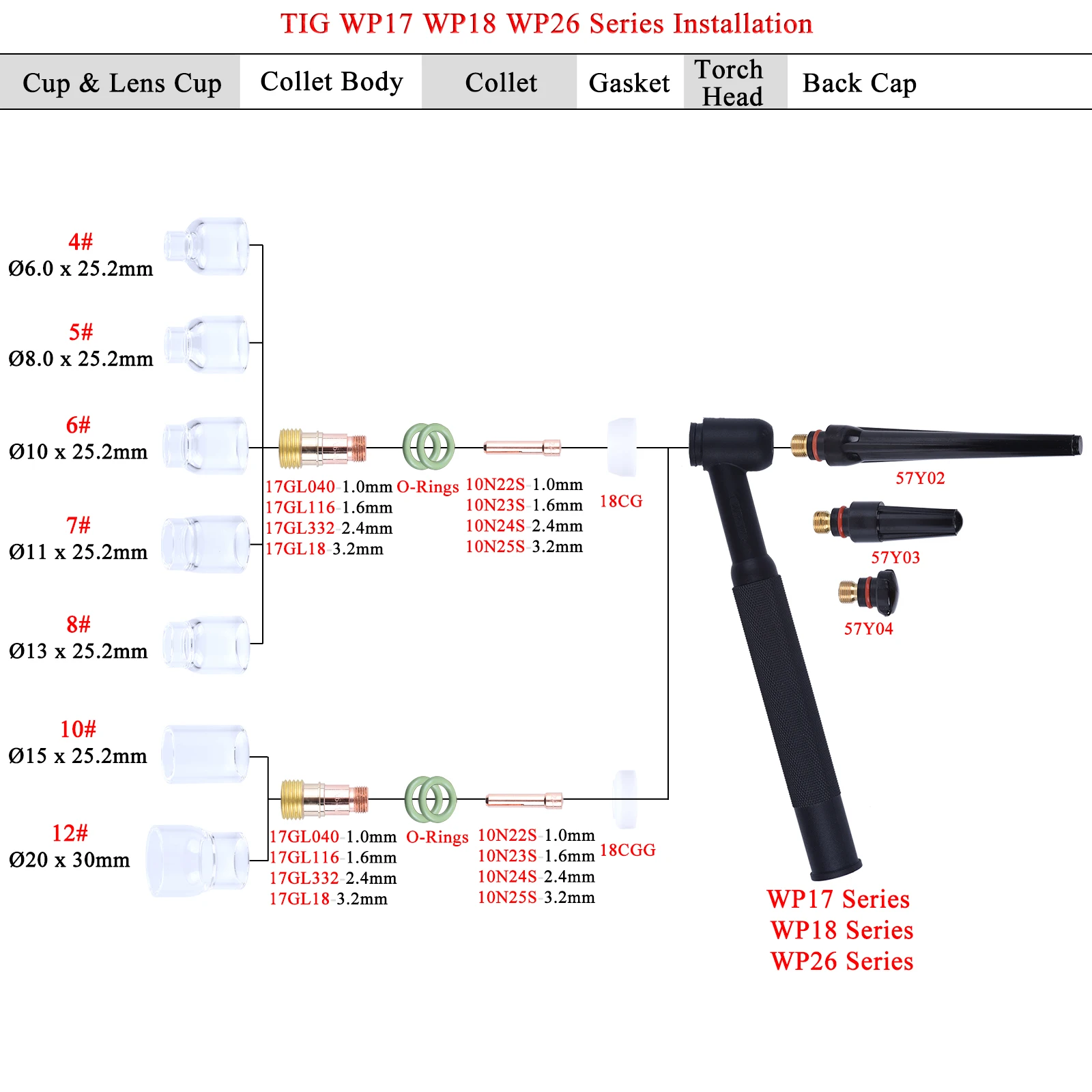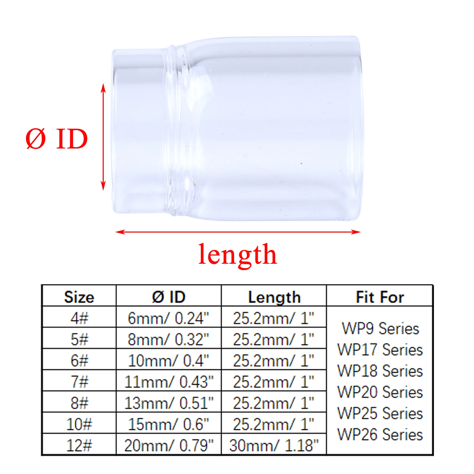 Прозрачное визуальное стекло TIG Pyrex, термостойкие уплотнительные кольца для WP917182026, короткие расходные материалы для газовых линз