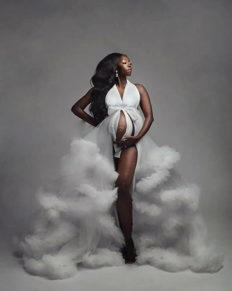 Платье женское фатиновое с V-образным вырезом, вечернее платье со шлейфом для фотосессии, белое