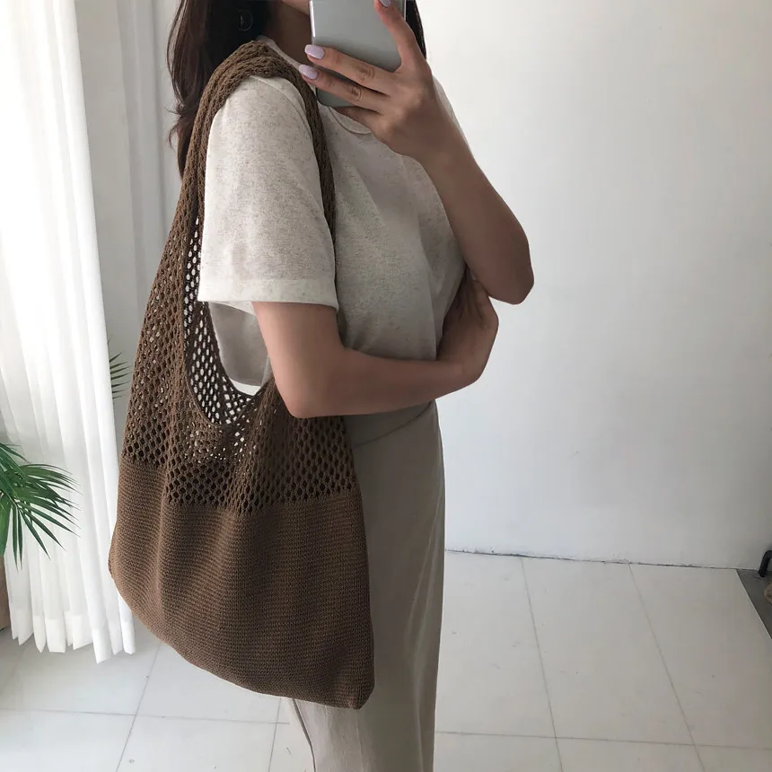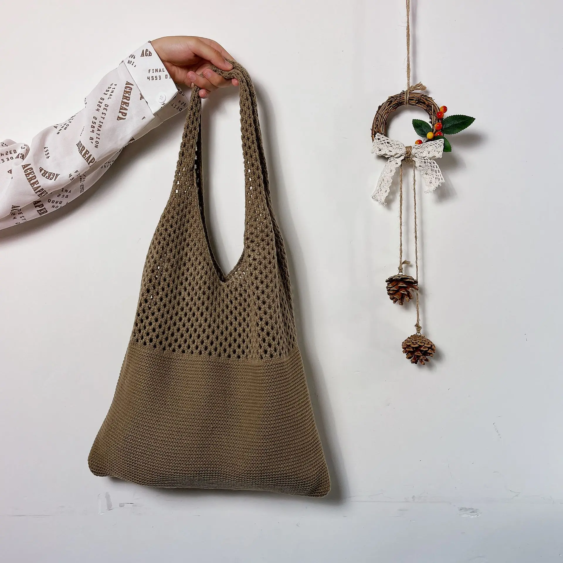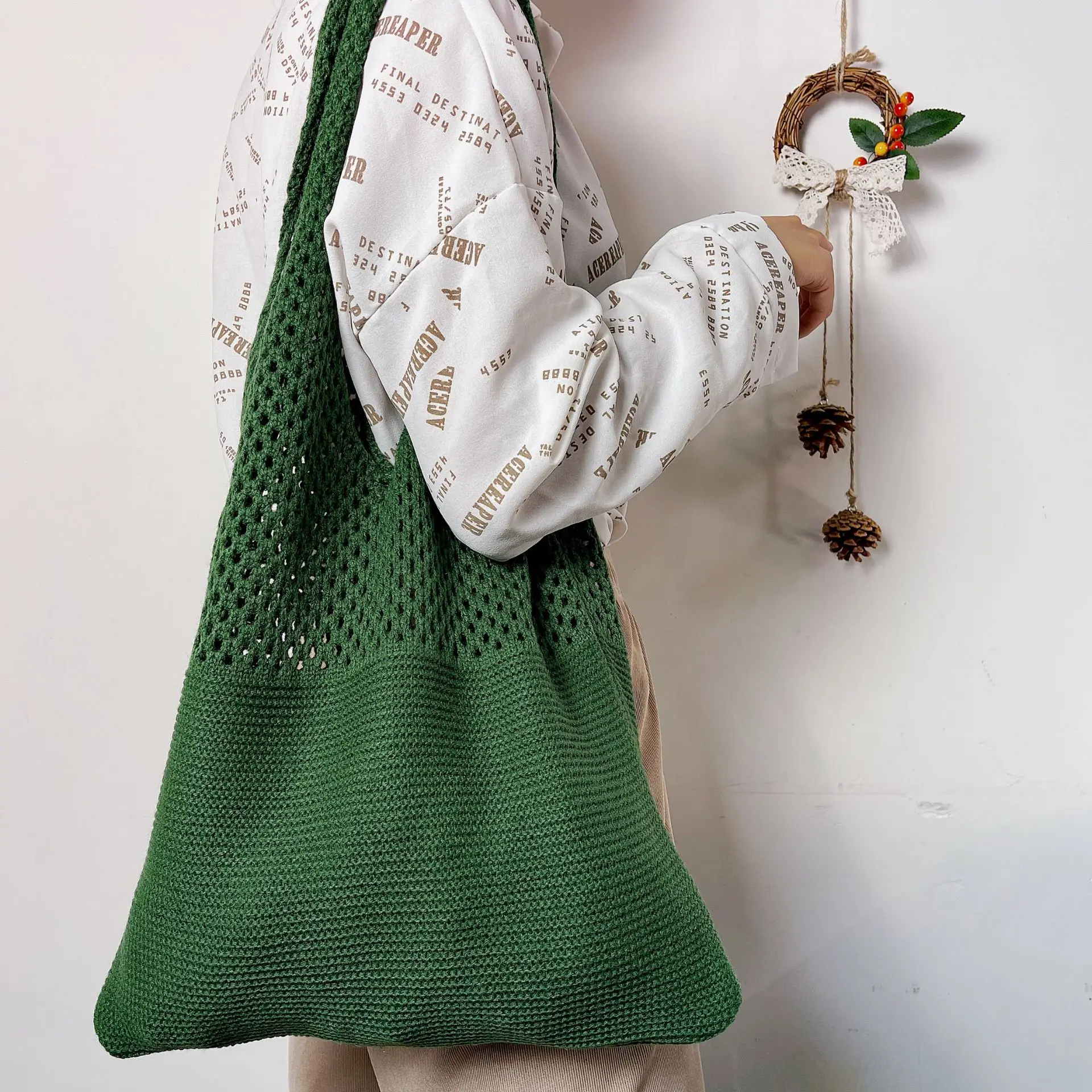 Винтажная вязаная шерстяная сумка на плечо, плетеная Сумка с отверстиями, лето-Зима 2021, женская сумка-шоппер в сельском ретро стиле