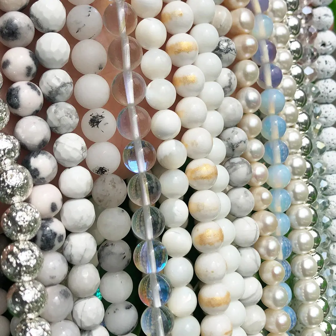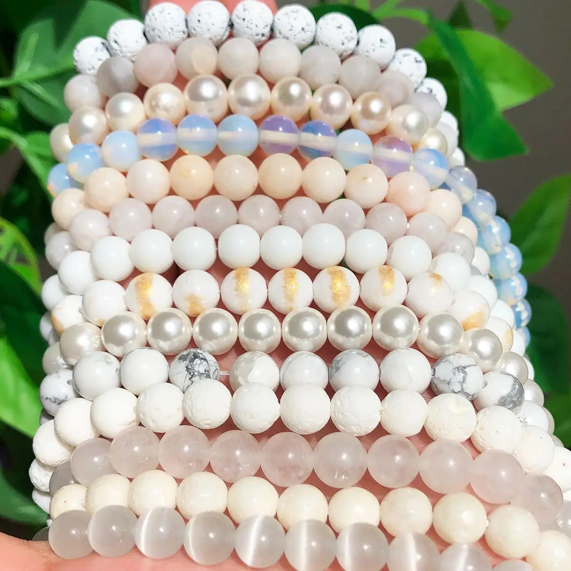 Натуральный драгоценный камень, белая серия, жемчужные бусины, опал, лунный камень, хрустальные Агаты, гематит Howlite, круглые бусины для изготовления ювелирных изделий