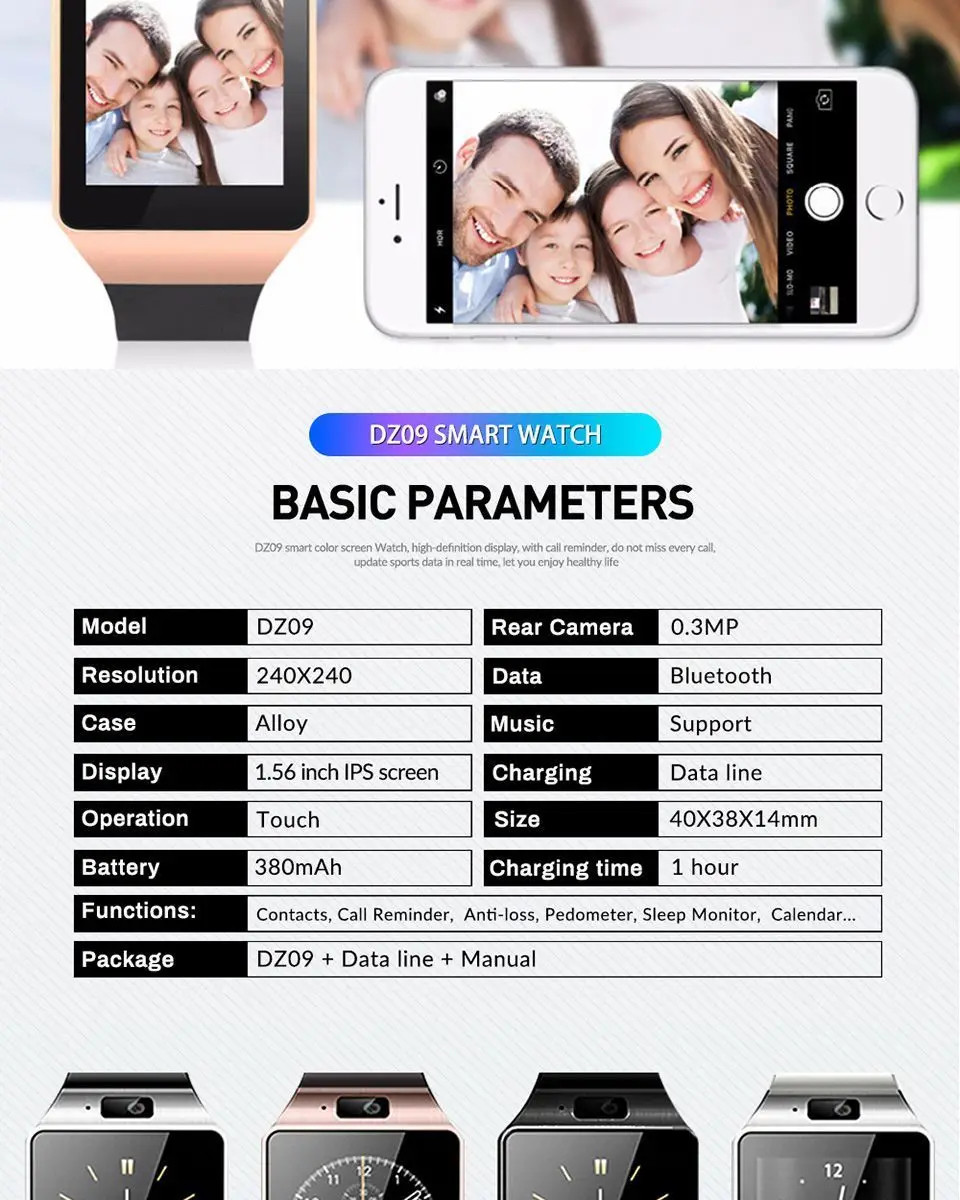 1x умные часы DZ09