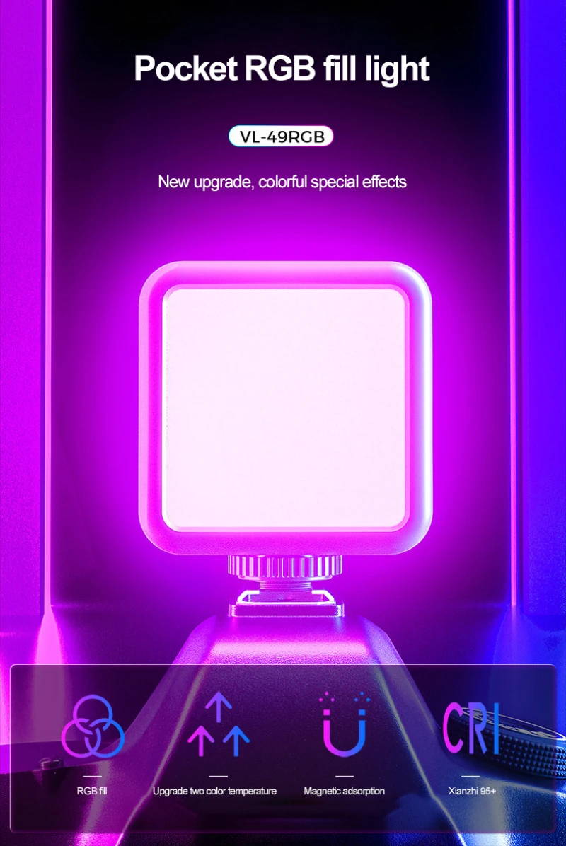 Лампа для видеосъемки Ulanzi VL49 RGB s, 2000 мА ч, перезаряжаемая Светодиодная панель, светильник для фото и видео, для Youtube TikTok