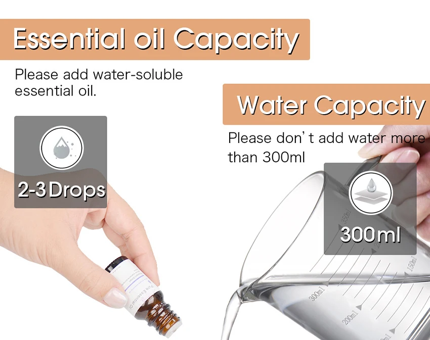 Примечание: Этот продукт является увлажнителем, а материал и структура не подходят для ароматерапии. Добавление эфирных масел может повредить срок службы продукта. Лучше всего использовать водопроводную воду для увлажнителя воды, потому что дистиллированная вода испаряется и очищенная вода извлекается, что изменяет первоначальное качество воды.