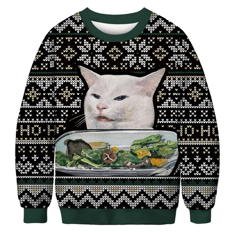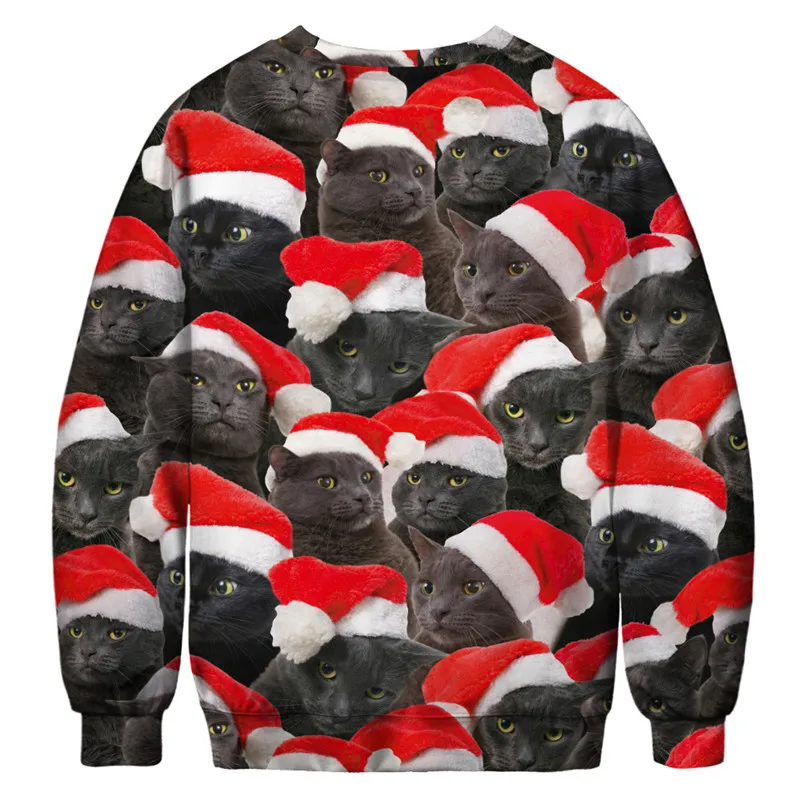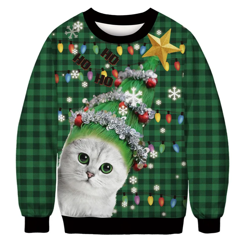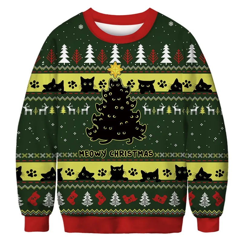 Уродливый Рождественский свитер для мужчин и женщин, Забавный праздничный свитшот с рождественским принтом кота, пуловер, Осенние рождественские Джемперы для вечерние НКИ