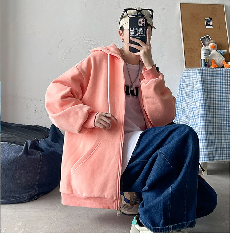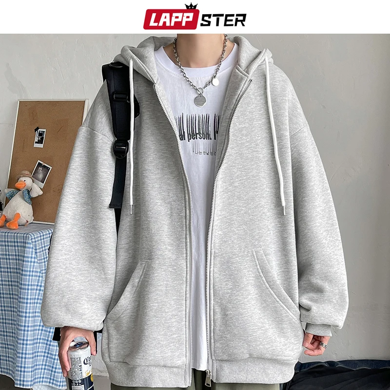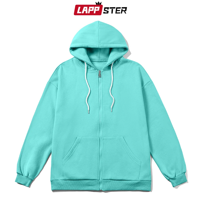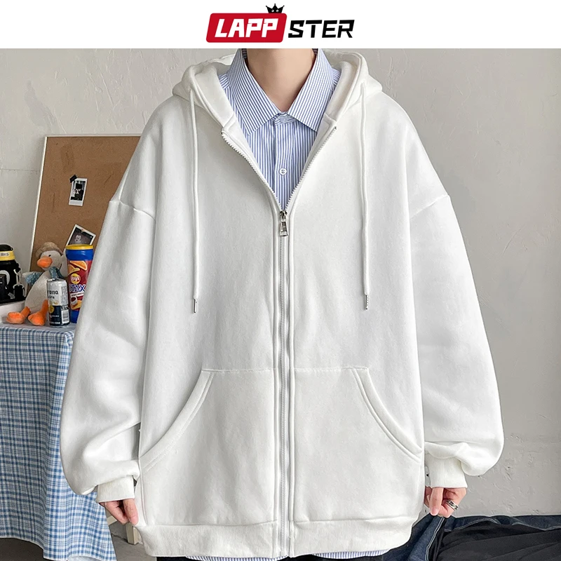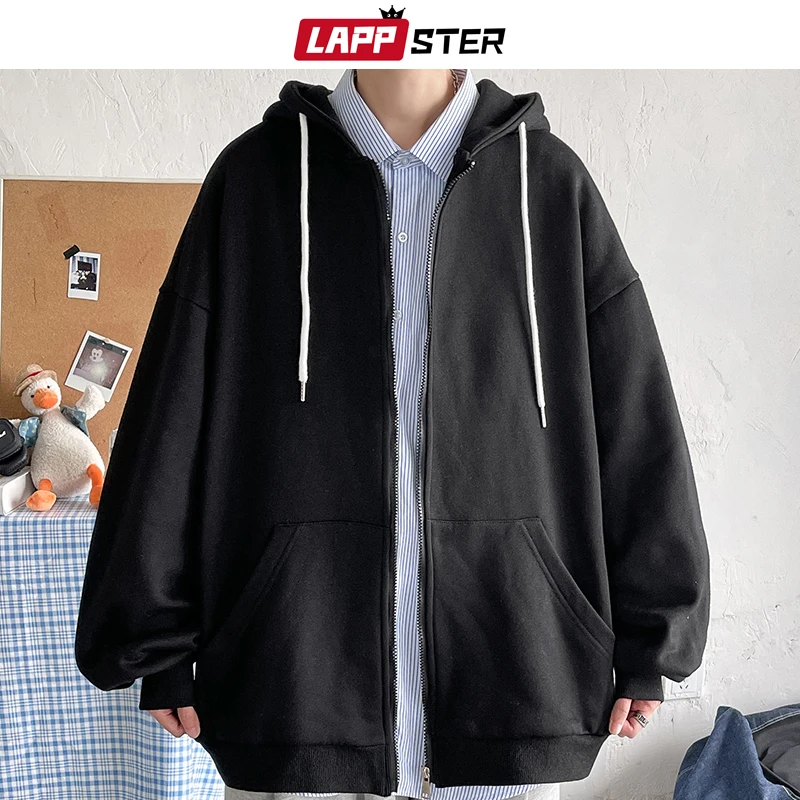 Толстовка LAPPSTER мужская с капюшоном, однотонная кофта в стиле харадзюку, свитшот оверсайз, винтажный повседневный кардиган, 7 цветов, 2022
