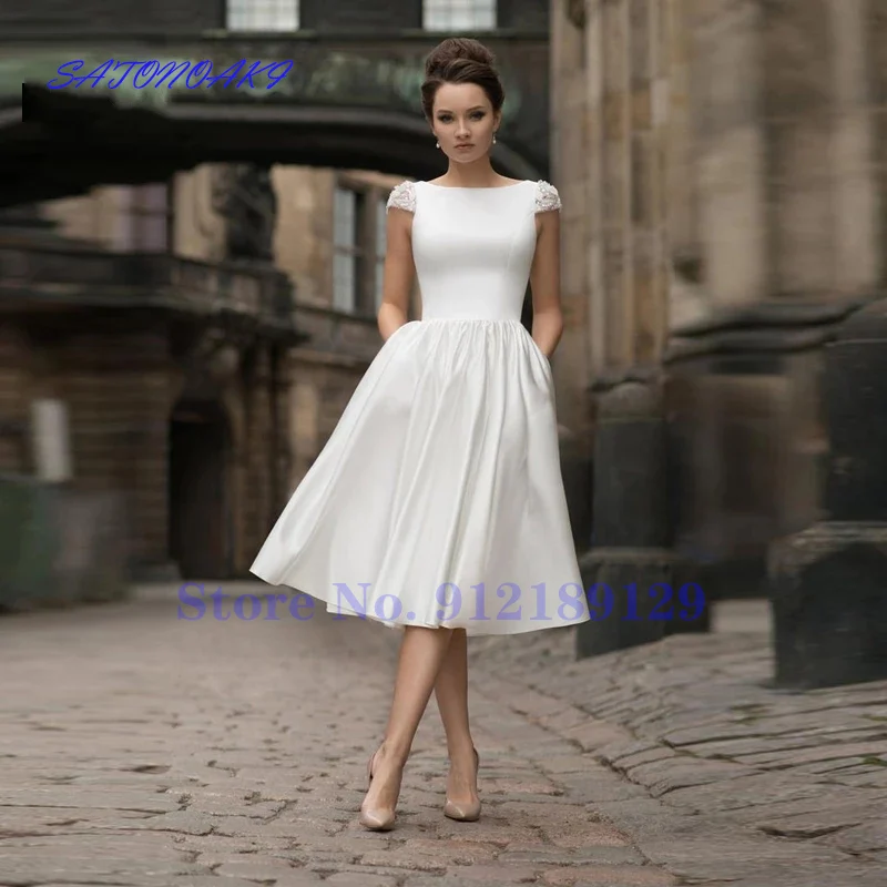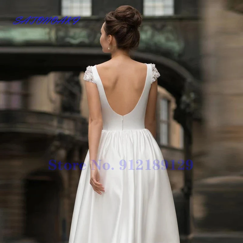 Женское атласное свадебное платье It's yiiya, белое короткое платье-трапеция с открытой спиной и рукавами-крылышками на лето 2019