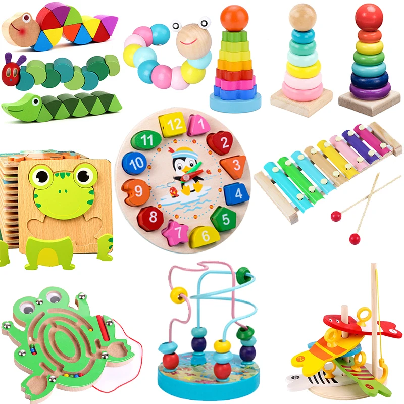 Детская игрушка Монтессори, деревянная 3D игрушка, Радуга Музыкальная погремушка, деревянная головоломка, Мультяшные животные, игрушка для раннего развития, подарок