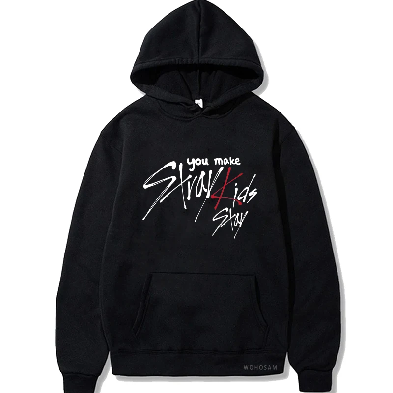 Детские толстовки с надписью You Make Straykids в Корейском стиле Харадзюку, женские поклонники, зимние толстовки большого размера с длинными рукавами в стиле пэчворк