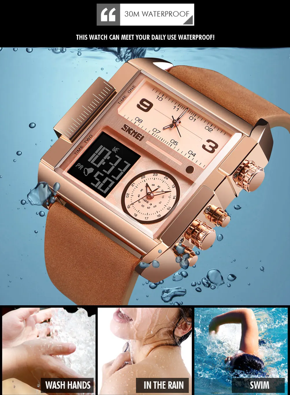 30 м (3 атм) водостойкий дизайн, не стесняйтесь носить часы, когда вы моете руки и лица и т. Д.