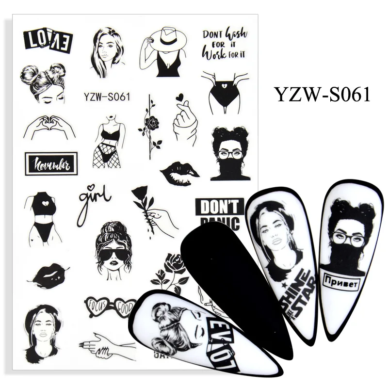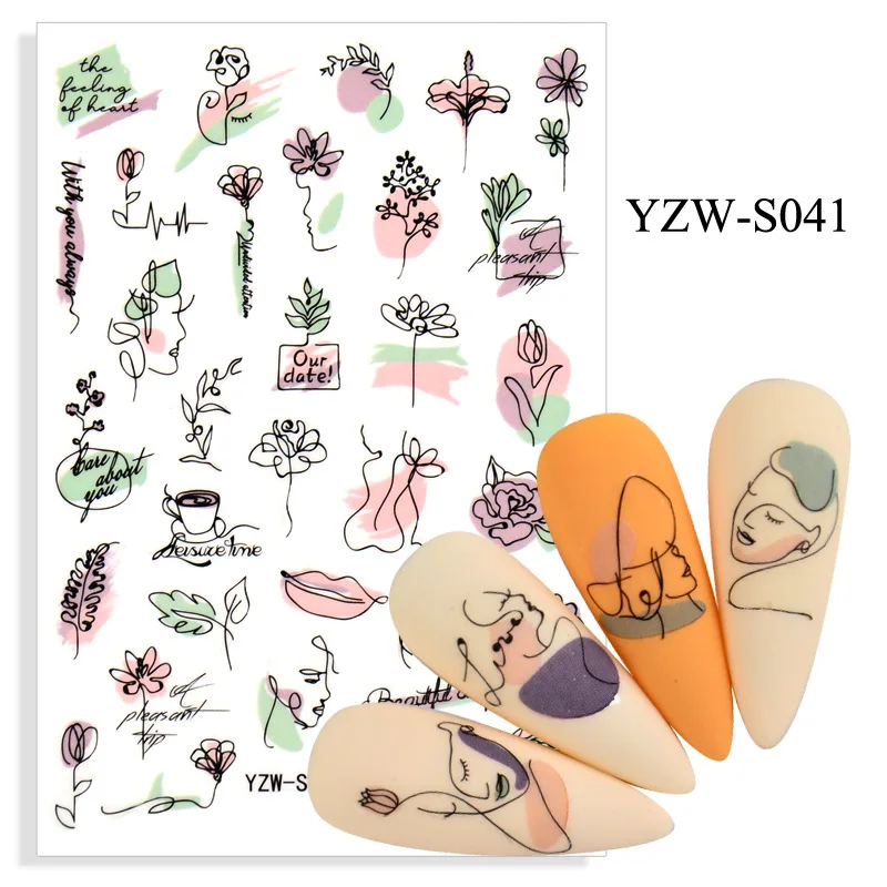 Наклейки для ногтей с абстрактным портретом, самоклеящиеся Слайдеры...