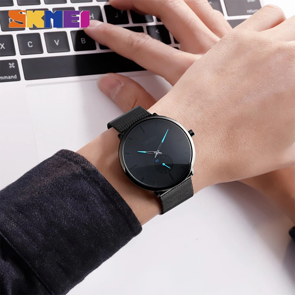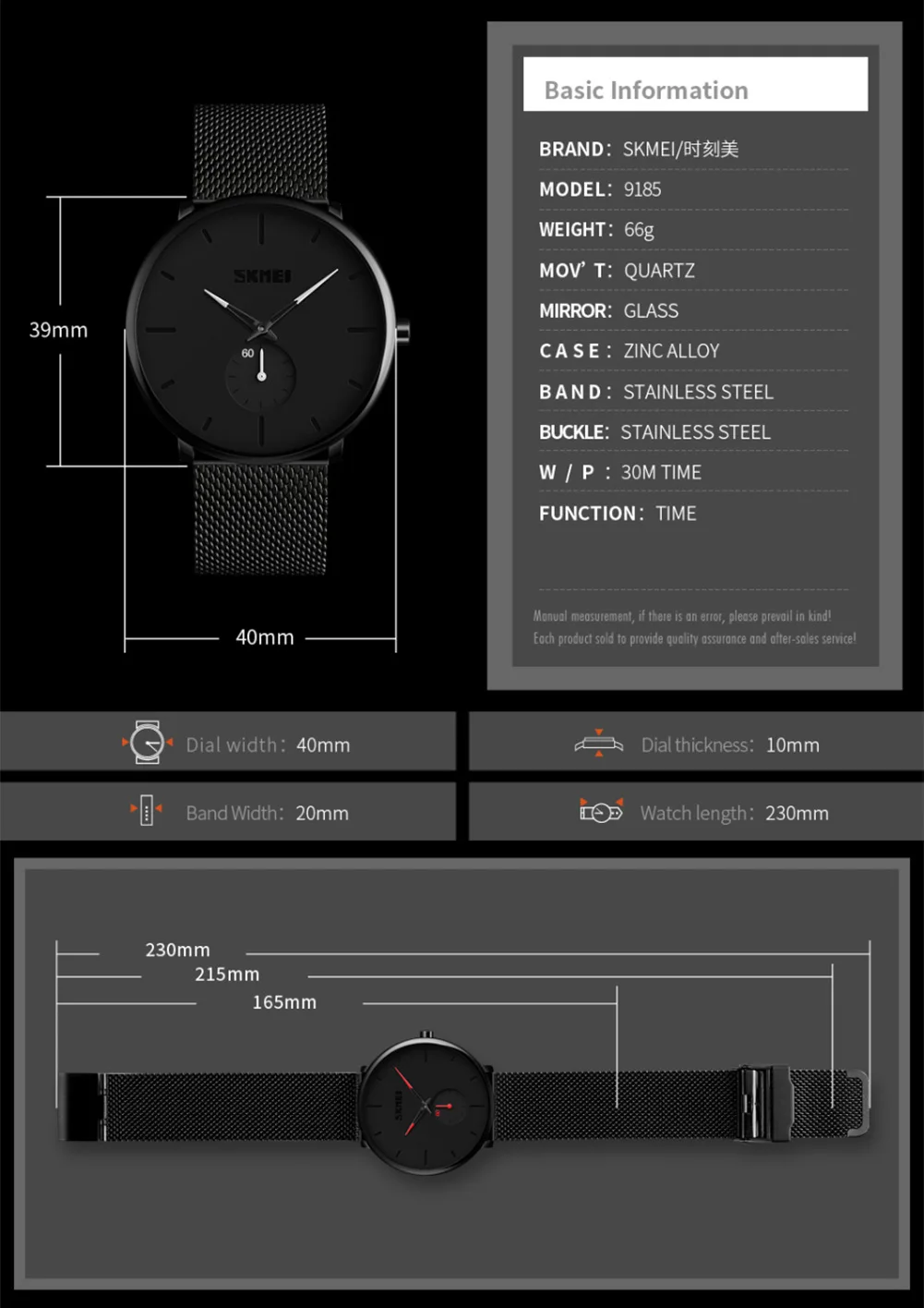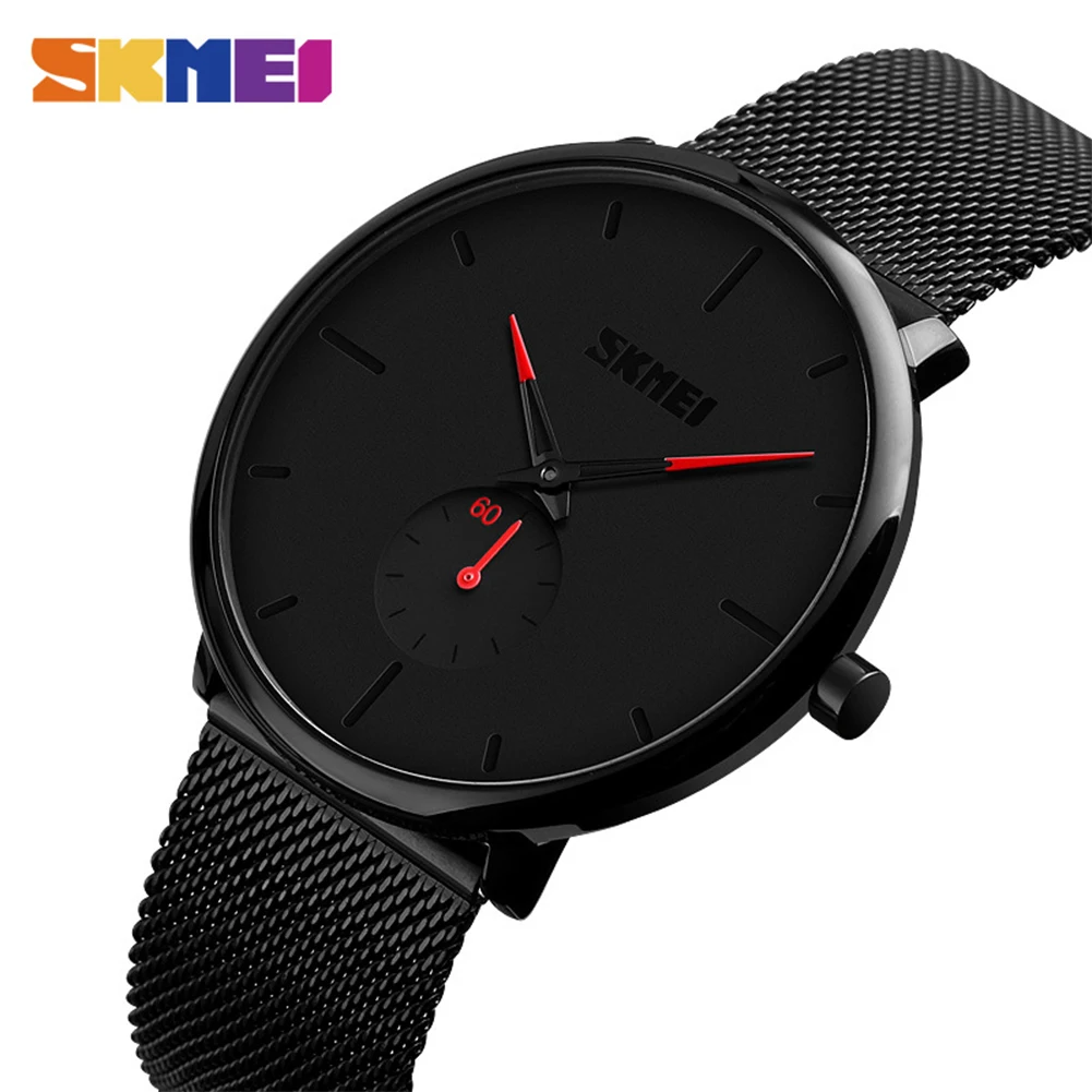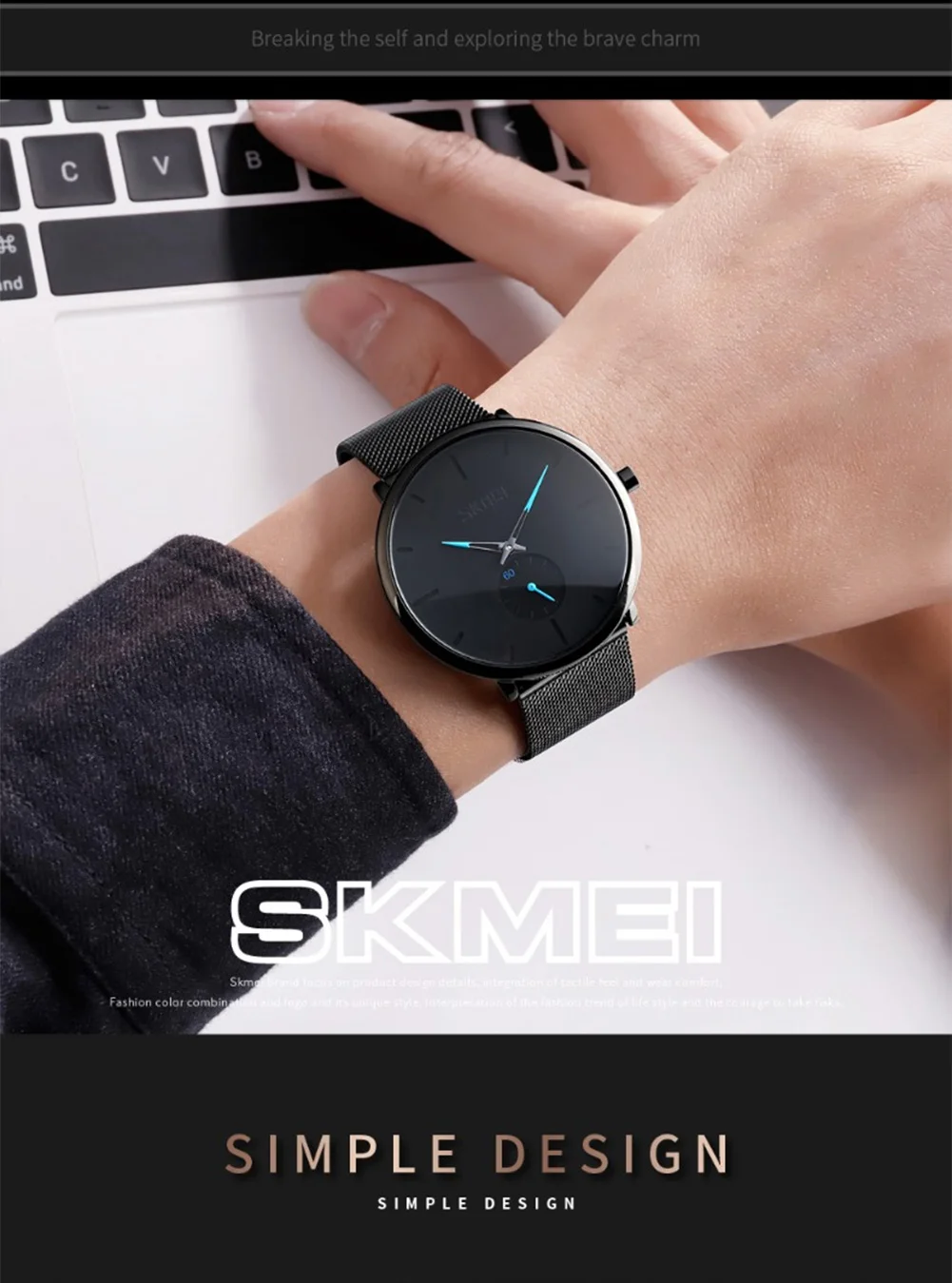 Часы наручные SKMEI Мужские кварцевые, простые брендовые деловые, с сетчатым стальным браслетом, 9185