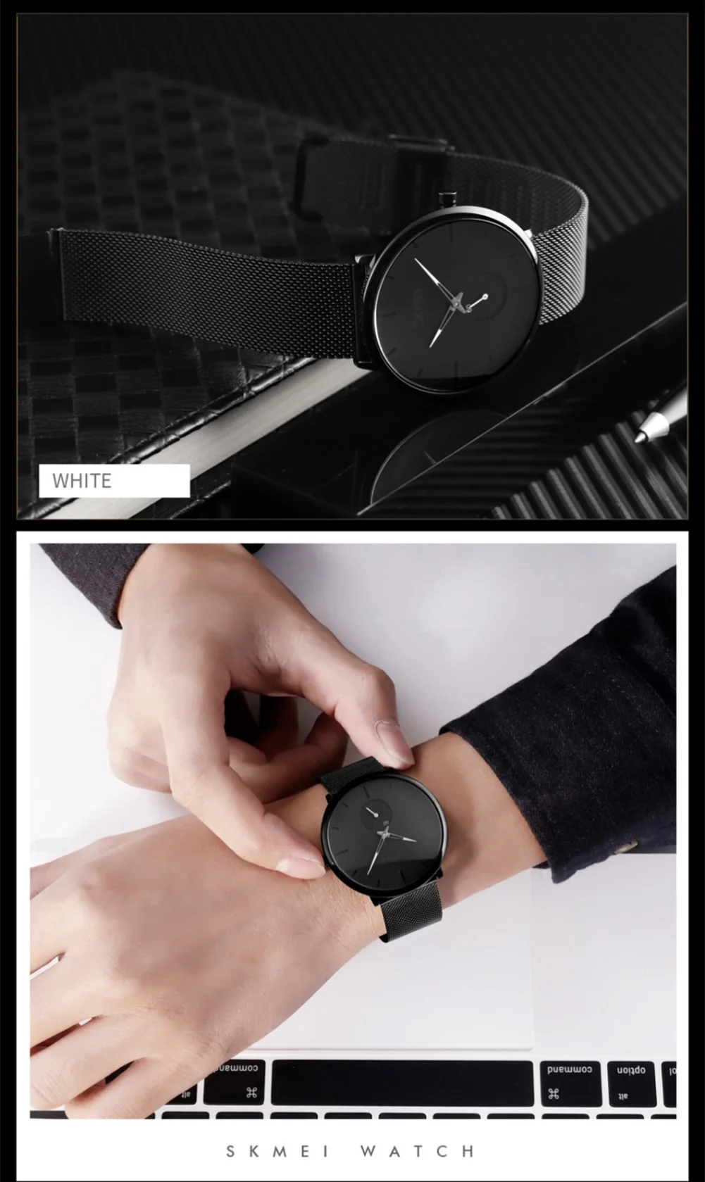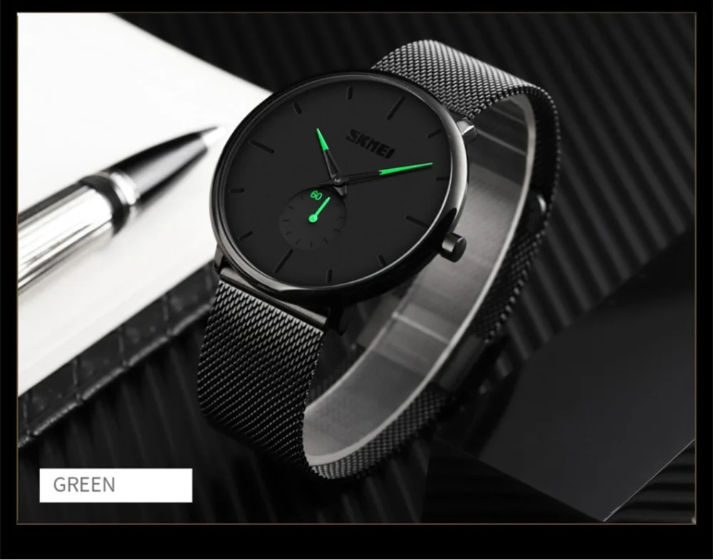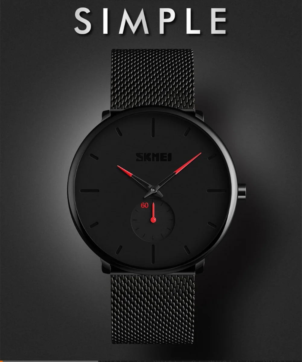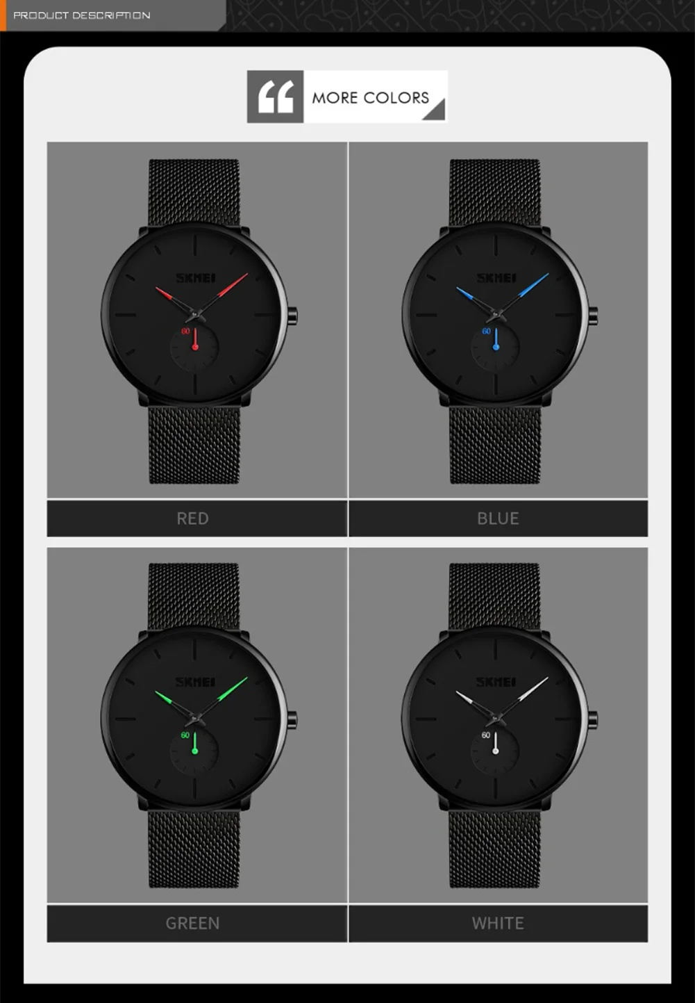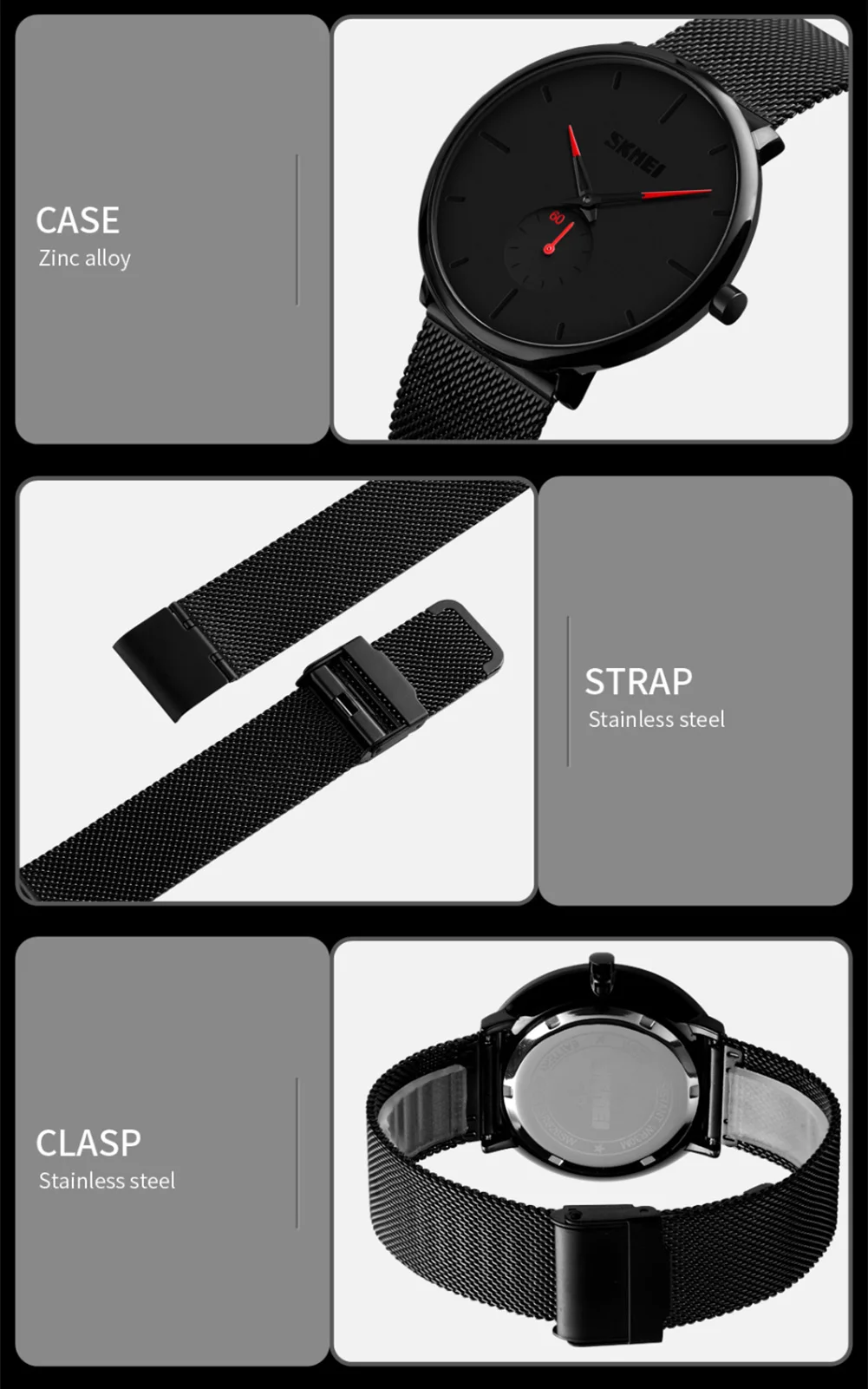 Часы наручные SKMEI Мужские кварцевые, простые брендовые деловые, с сетчатым стальным браслетом, 9185