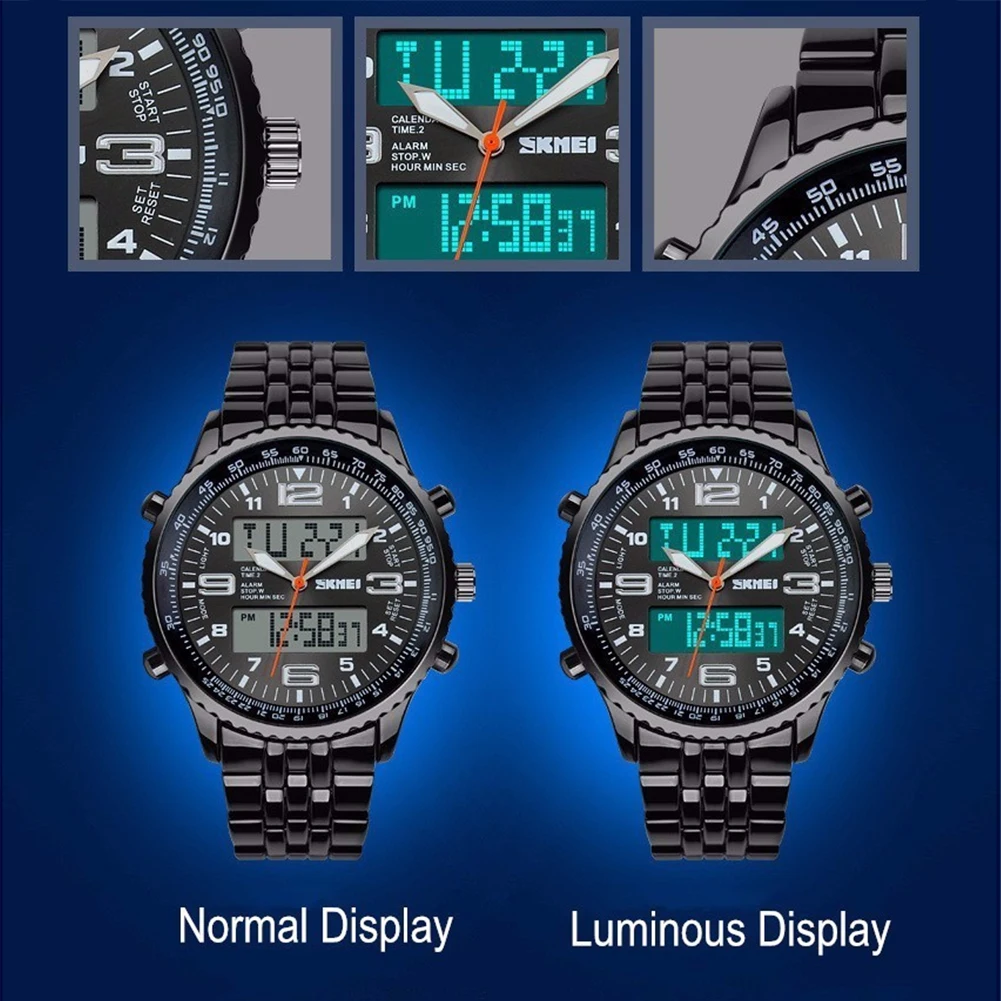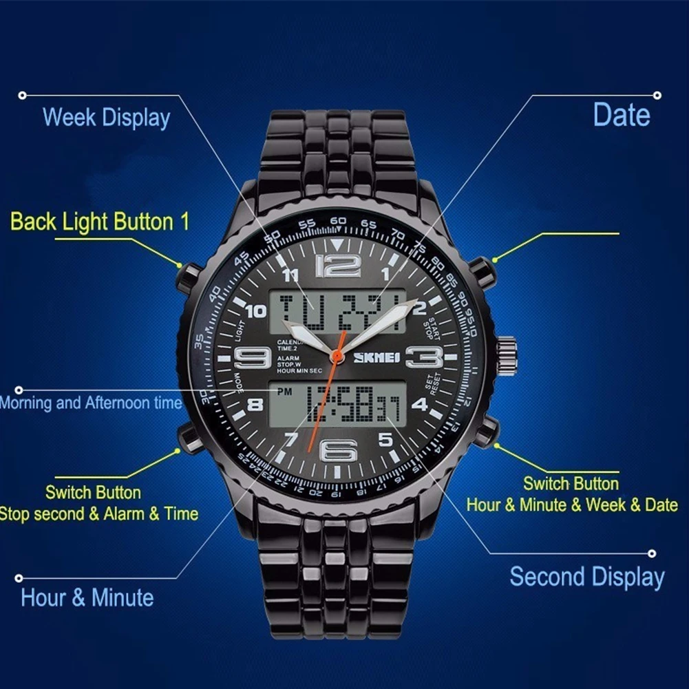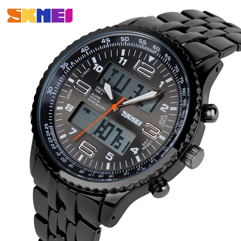 Модные брендовые светодиодные цифровые часы Skmei, повседневные мужские Роскошные военные часы, спортивные водонепроницаемые кварцевые часы из нержавеющей стали