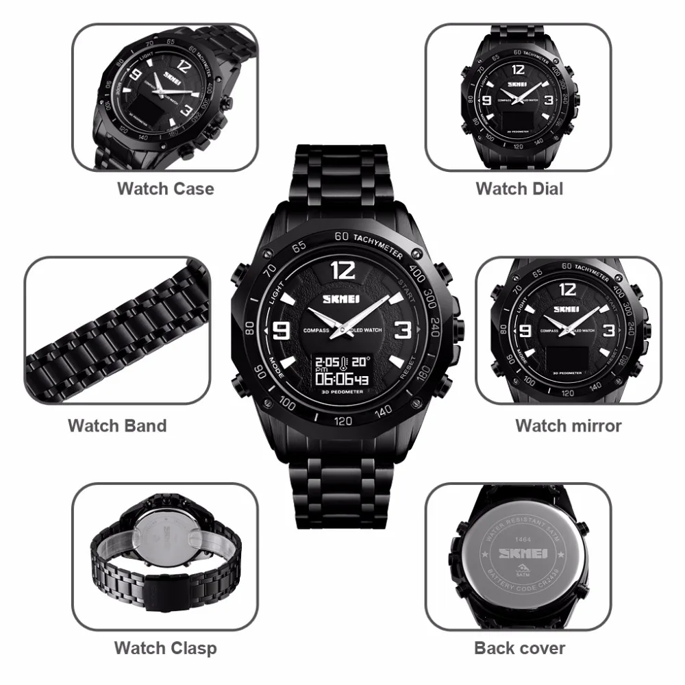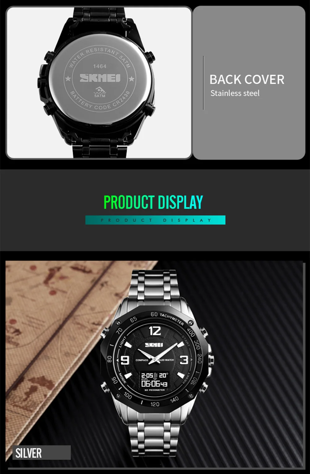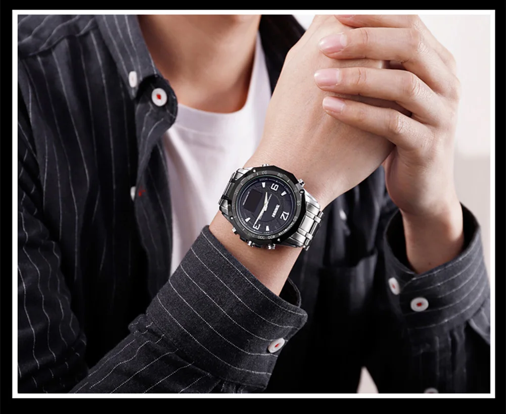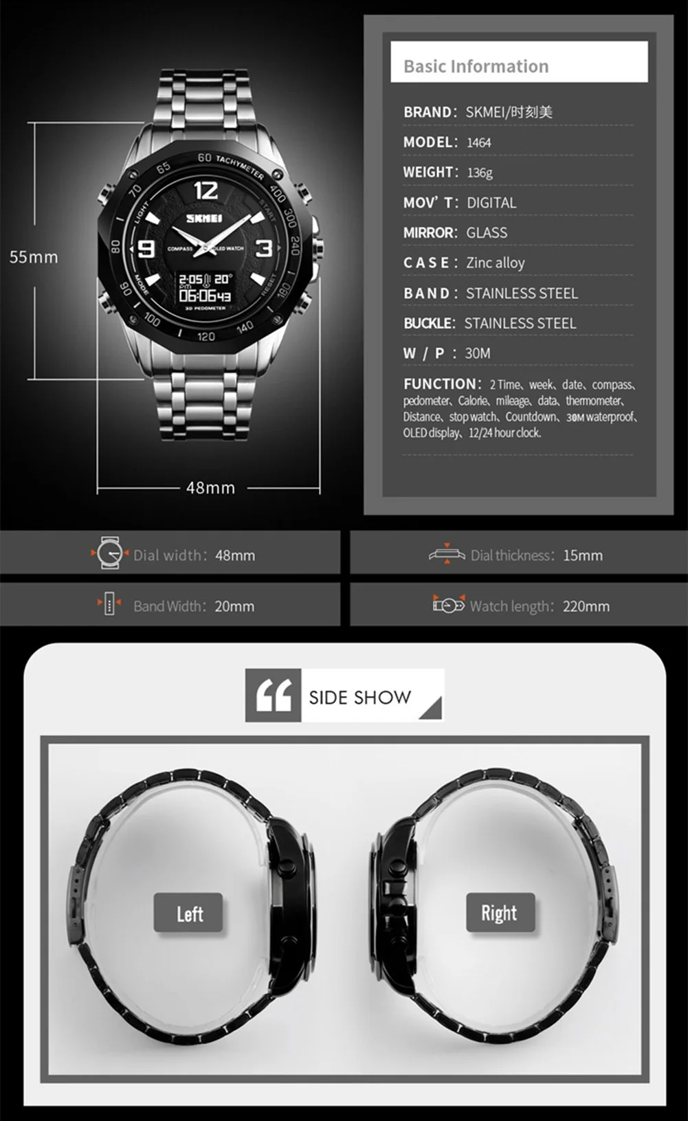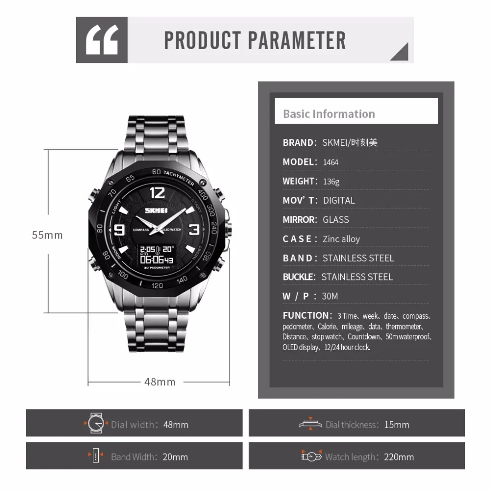 Часы наручные SKMEI Мужские Цифровые, модные электронные Кварцевые водонепроницаемые из нержавеющей стали, 1464
