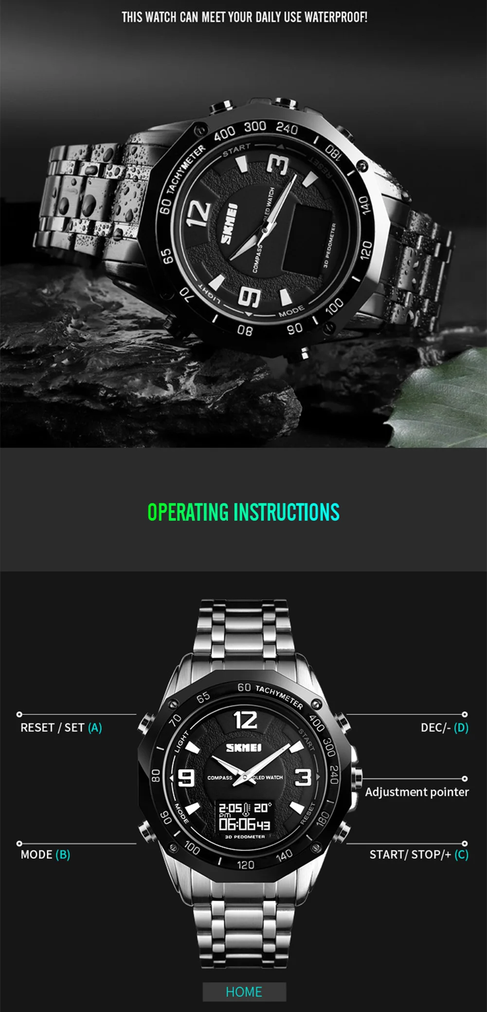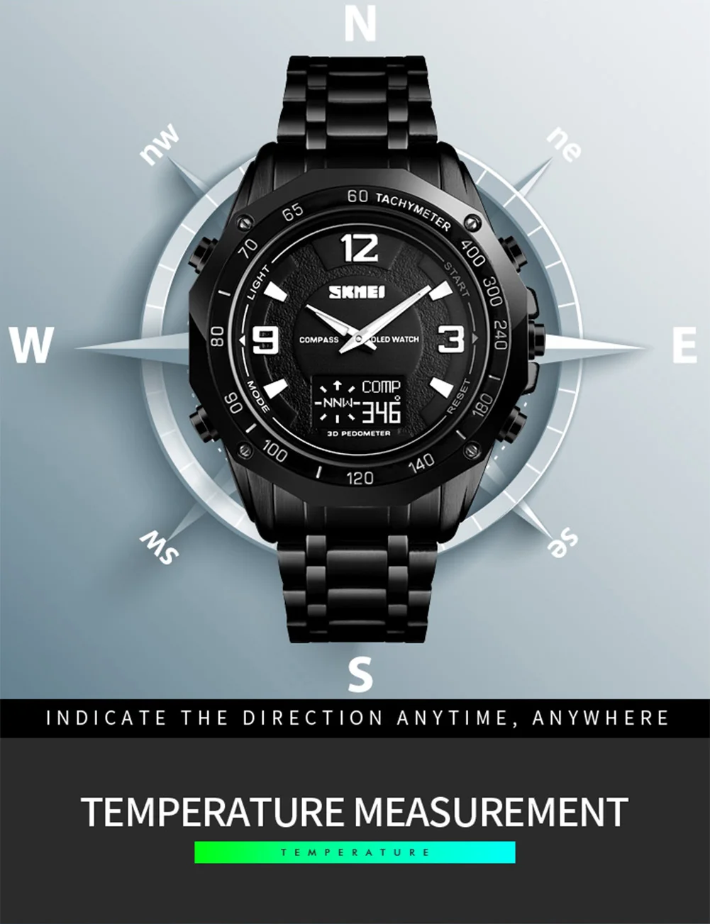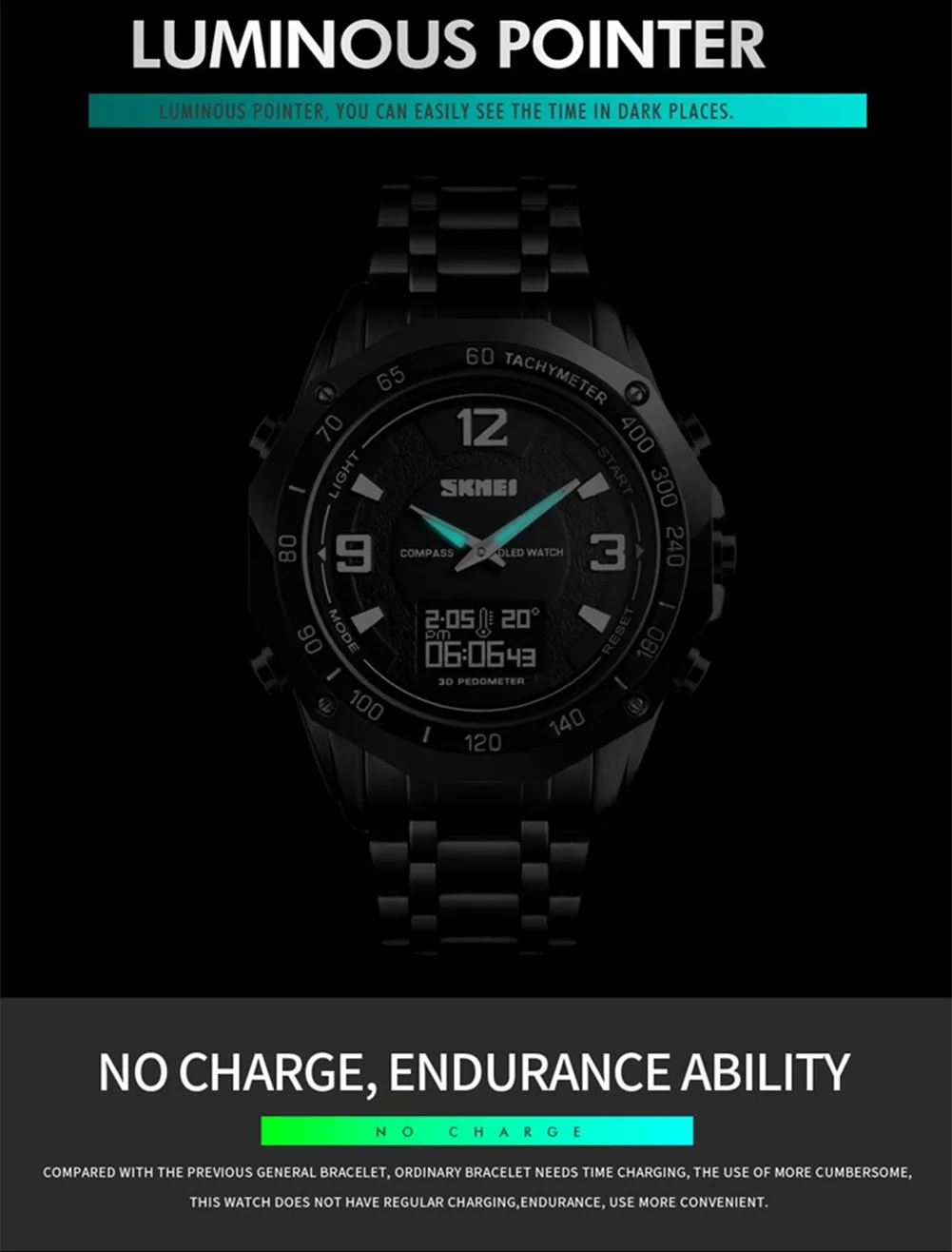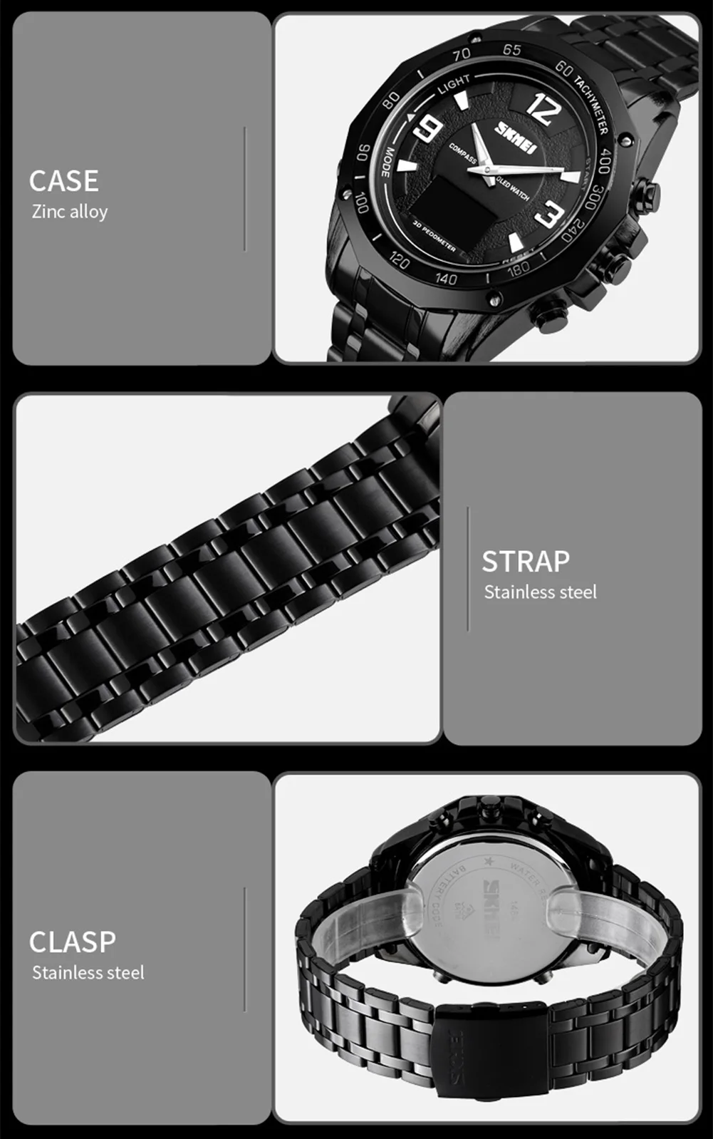 Часы наручные SKMEI Мужские Цифровые, модные электронные Кварцевые водонепроницаемые из нержавеющей стали, 1464