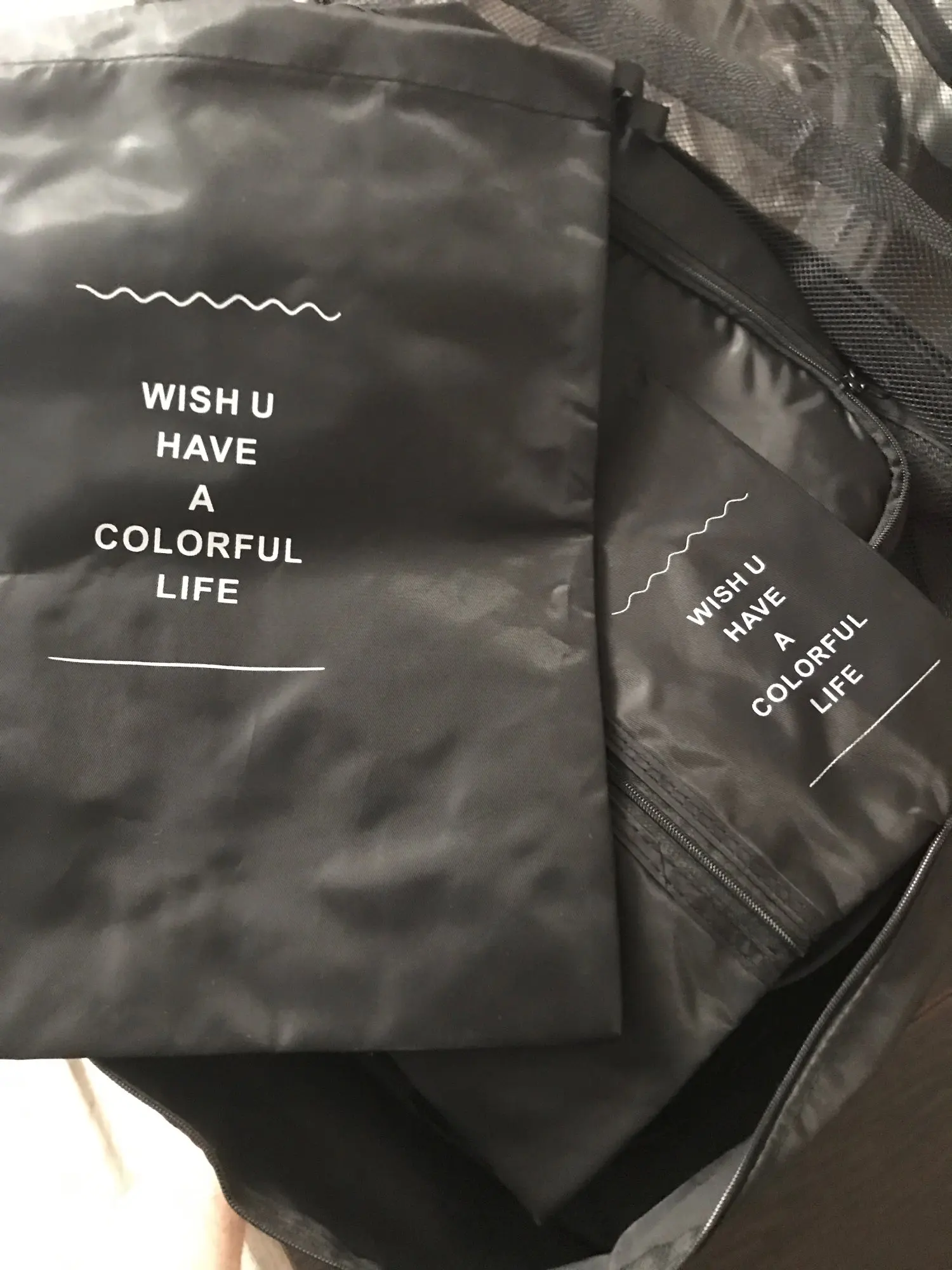пришла посылка быстро вместе с другими товарами, качество так себе, нитки торчат, но просто нужен был органайзер для чемодана, не очень качественно на 2.5 бала из 5