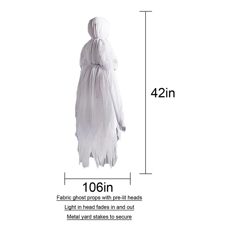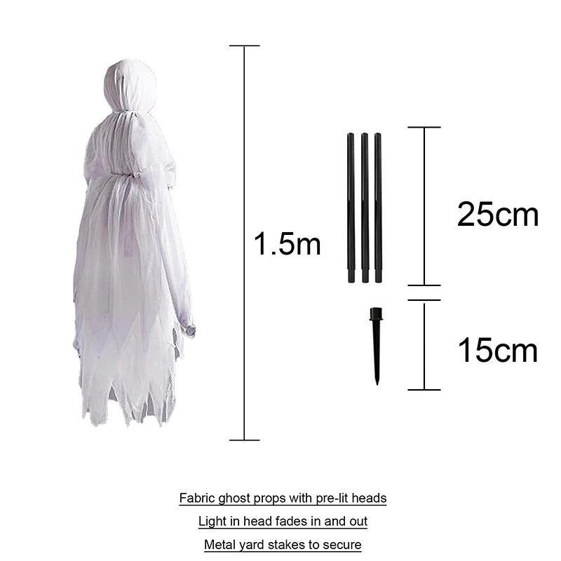 Призрак покрыт мягкой тканью, она как плавающая в воздухе. Подходит для украшения двора или дома на Хэллоуин. Особенно, положите их во двор и дверь, чтобы увеличить праздничную атмосферу.