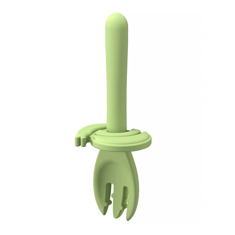 Силиконовые тренировочные ложки, без БФА, 1 шт., вилка для кормления, 2 в 1, безопасная посуда, Детские Обучающие ложки, приспособление для прорезывания зубов