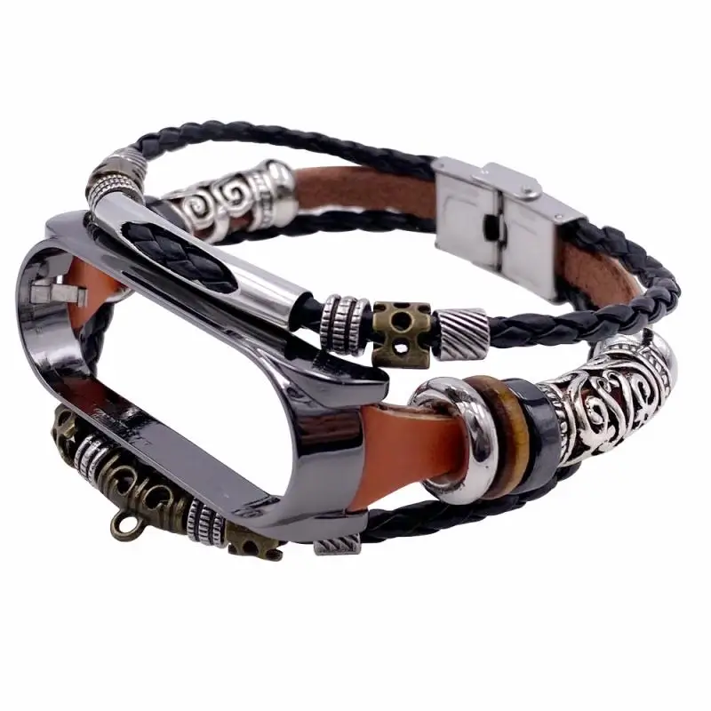 Сменный кожаный ремешок для Xiaomi Mi Band 5 6, сменный плетеный браслет с бусинами для наручных часов