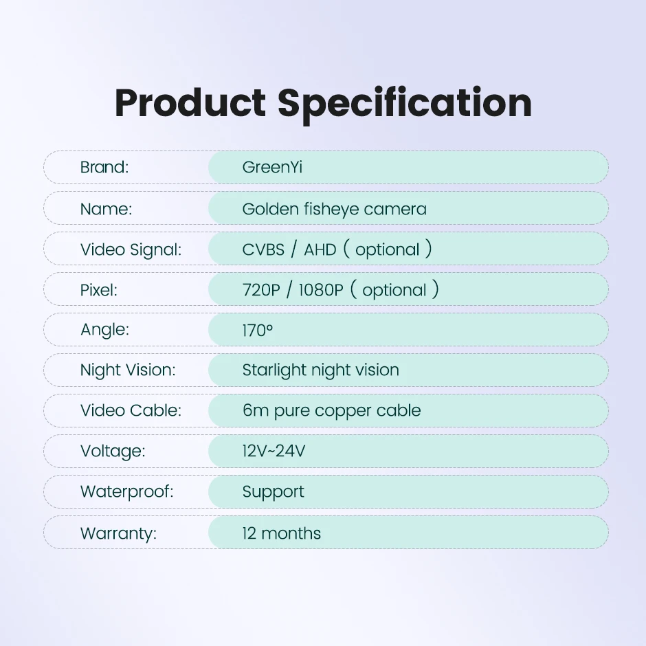 A) белый кабель: Управление видеосигналом• Камера GFA:(CVBS )+( 1280x720 )+( 170 °)Отрежьте белый кабель (повторно подключите питание камеры) →( AHD )+( 1280x720 )+( 170 °)• Камера GAHD:(AHD1080P )+( 1920x1080 )+( 175 °)Отрежьте белый кабель (повторно подключите питание камеры) →( CVBS )+( 1280x720 )+( 125 °)B) зеленый кабель: Управление линией парковкиКамера с парковочной линией/камерой не отображает линию парковки, вы можете отрезать зеленый кабель, затем повторно подключить блок питания камеры, что может изменить линию парковки.