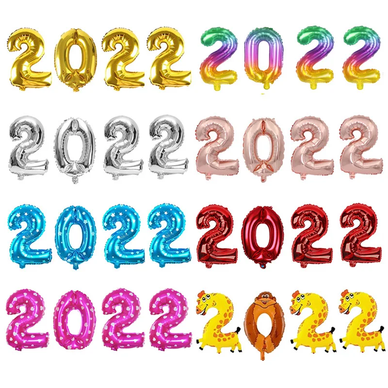 16 дюймов новый год 2022 количество фольги шары золото серебро цифр...