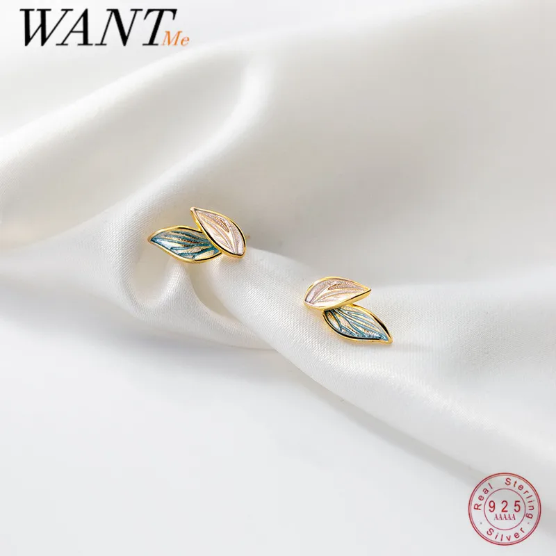 Женские простые серьги-гвоздики WANTME, серьги из серебра 925 пробы с синими листьями в Корейском стиле, милые ювелирные украшения для подростков