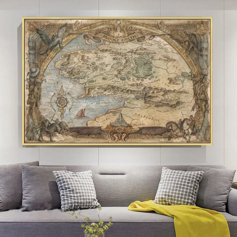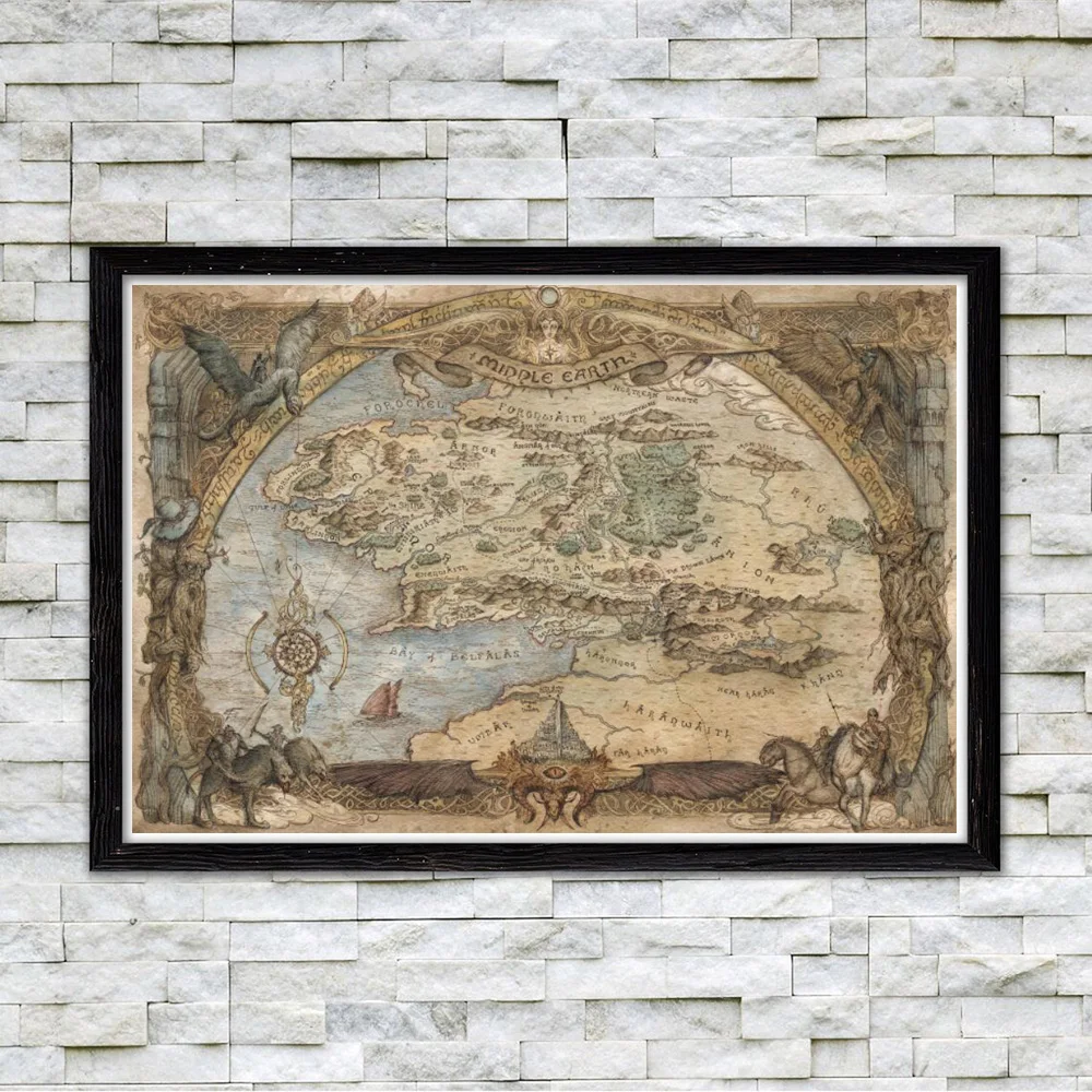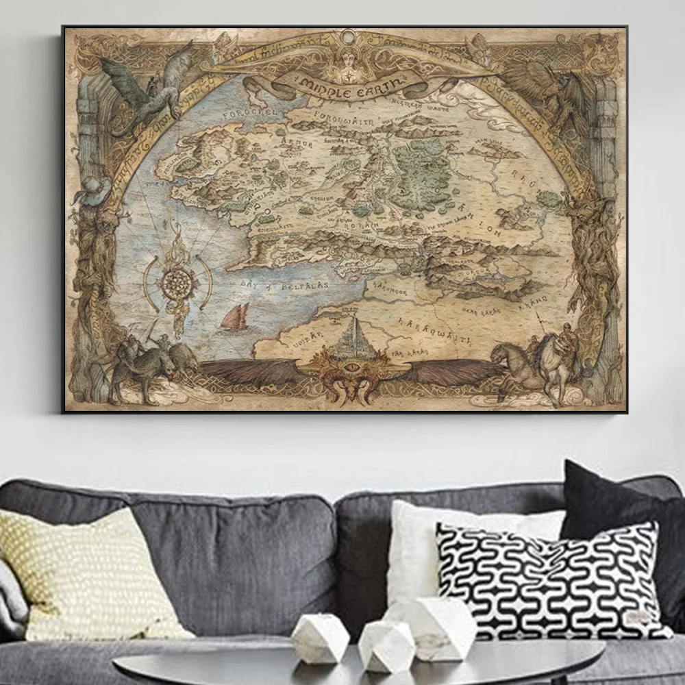 Винтажная карта мира средней земли, кинопостер и принты, Властелин ...