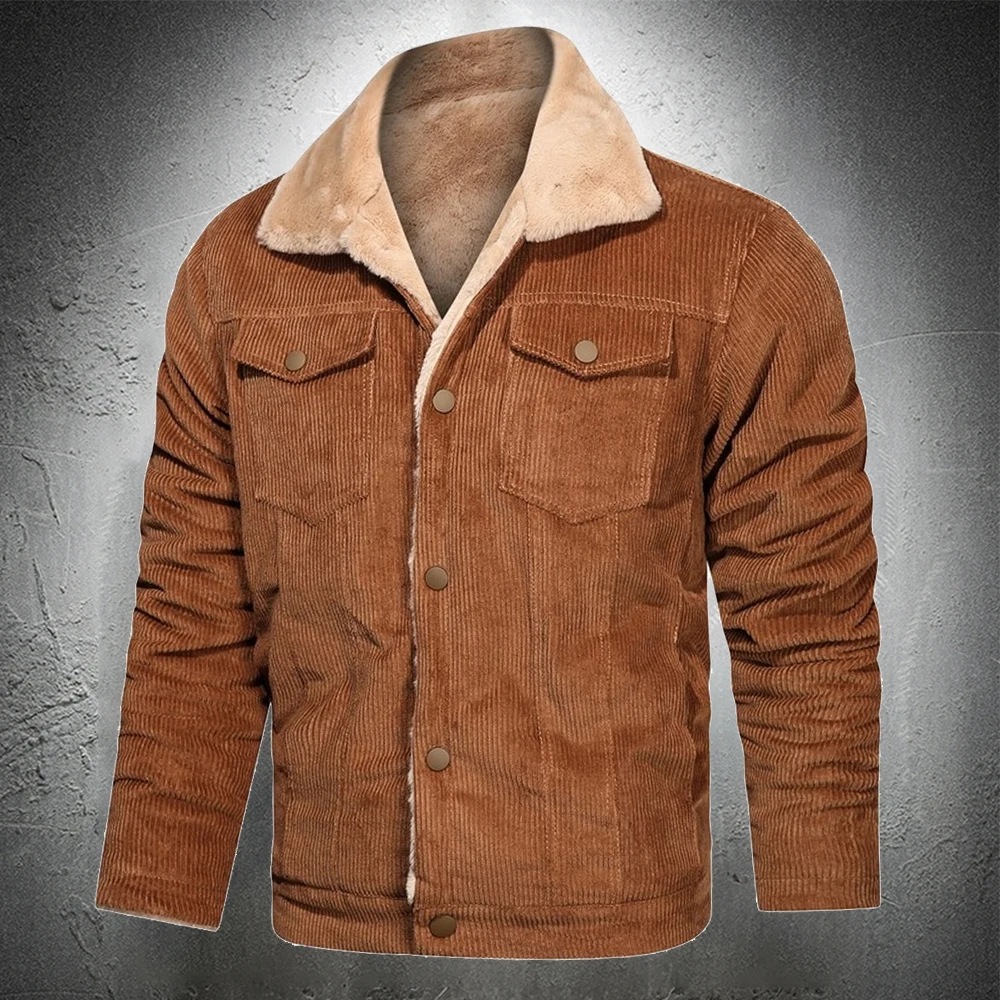 Вельветовая мужская куртка с меховым воротником, куртка-тракер, модная одежда для мужчин, уличная одежда, винтажная куртка с отложным воротником, Осень-зима