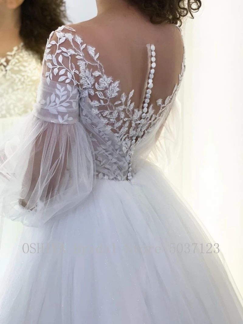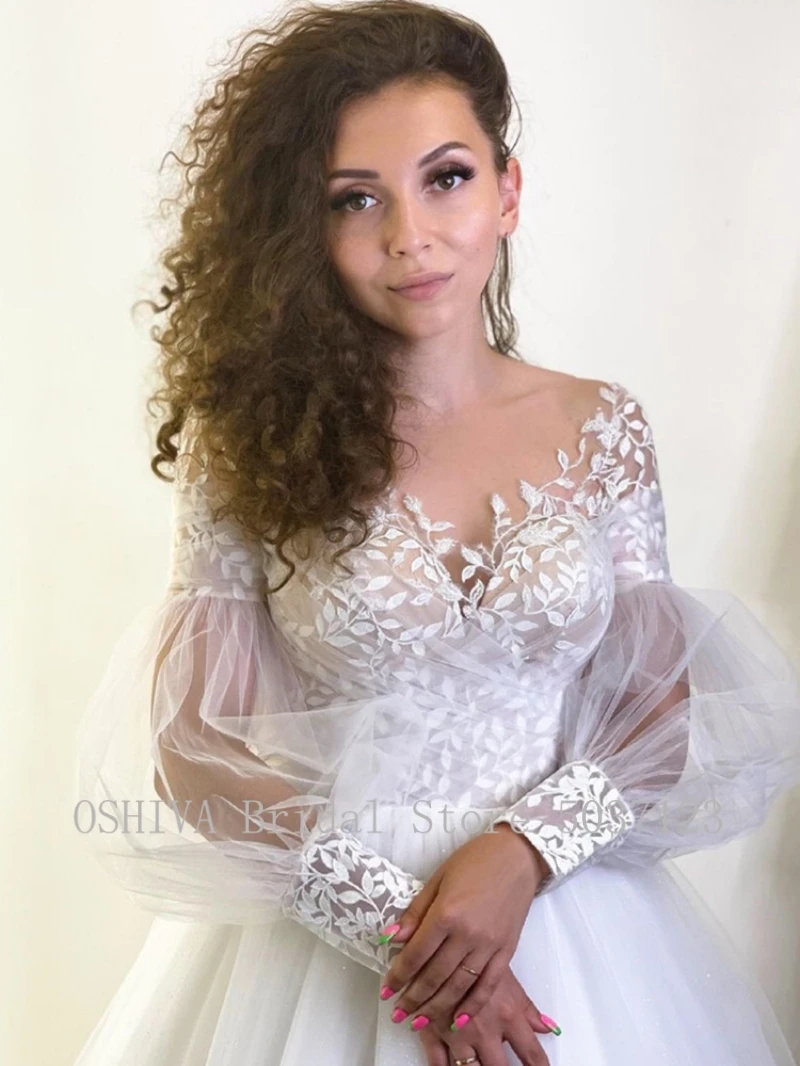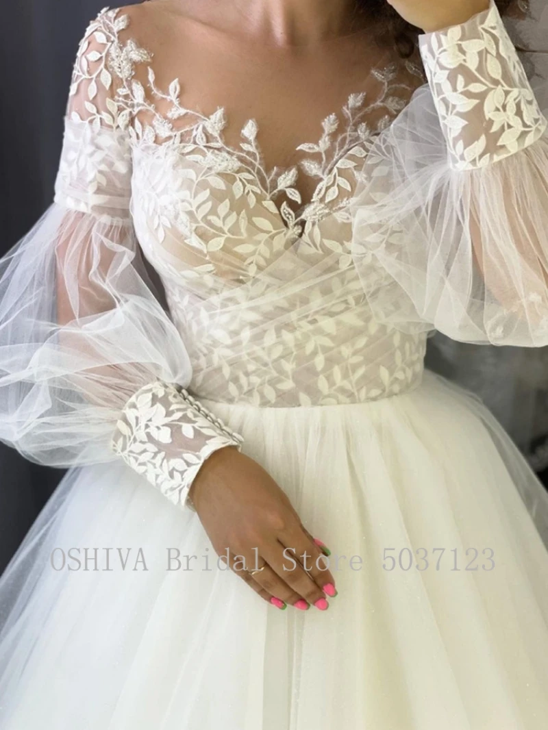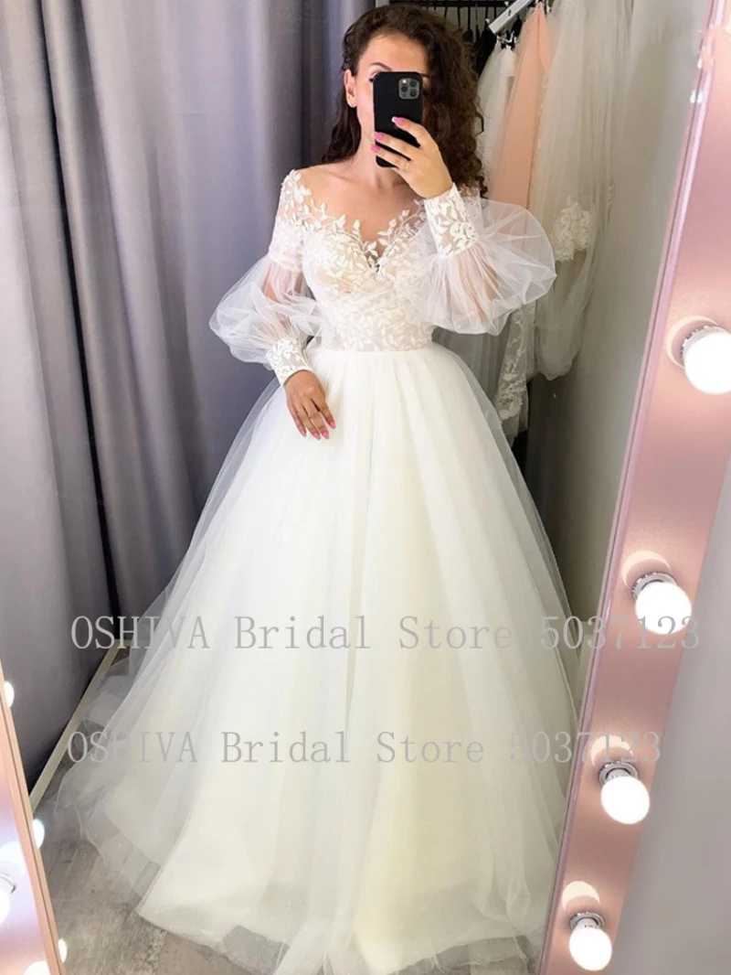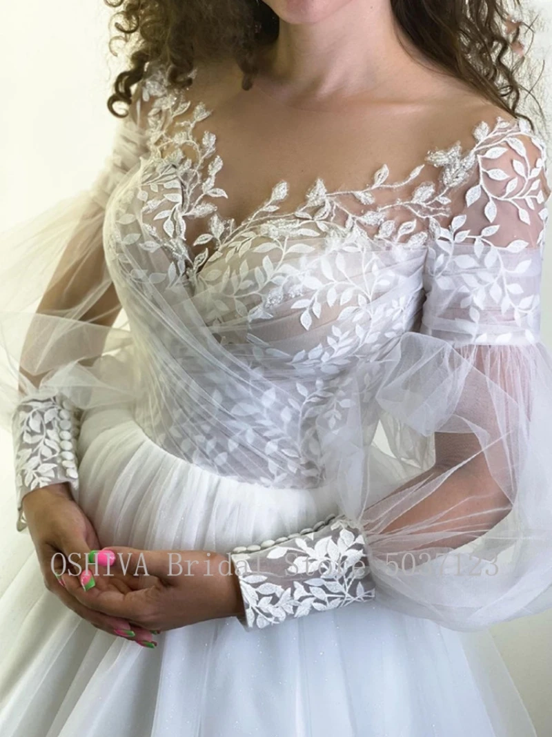 Платье Свадебное ТРАПЕЦИЕВИДНОЕ с V-образным вырезом и длинными рукавами-фонариками