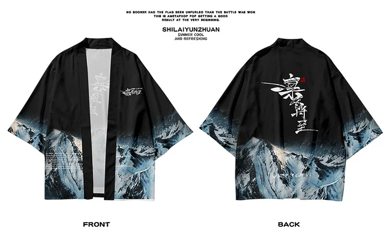 Кардиган-кимоно в японском стиле Харадзюку для мужчин, пляжная одежда с принтом и брюки, уличная одежда в японском стиле, хаори