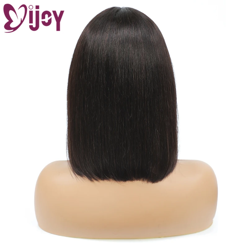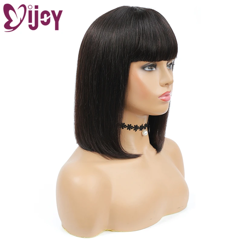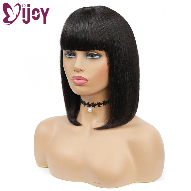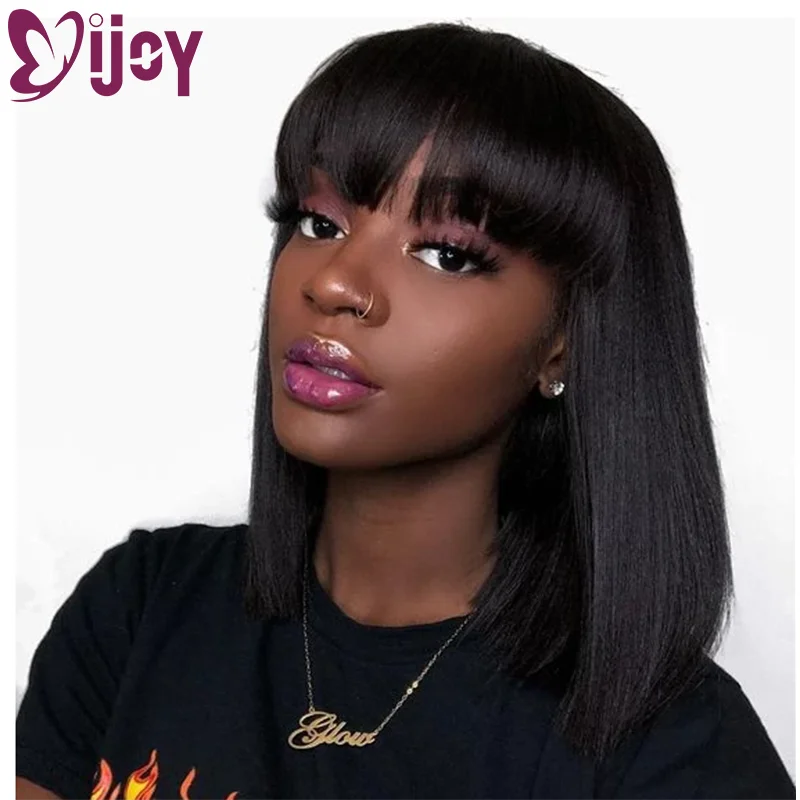 Парик IJOY из коротких бразильских прямых натуральных волос с челкой, не Реми, полностью машинный, для чернокожих женщин