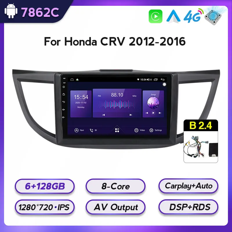 Автомобильный радиоприемник, 4G LTE 6 + 128G, Android 11, встроенный Автомобильный радиоплеер Carplay для Honda CRV CR-V 2012-2016, GPS-навигатор, головное устройство DSP RDS BT