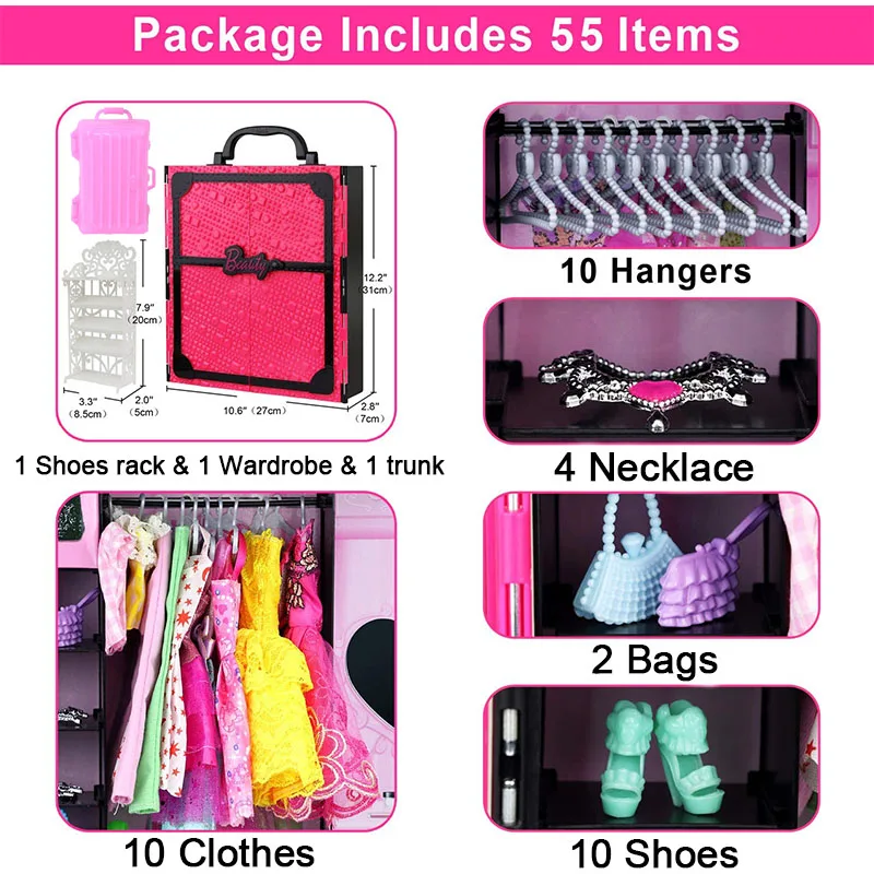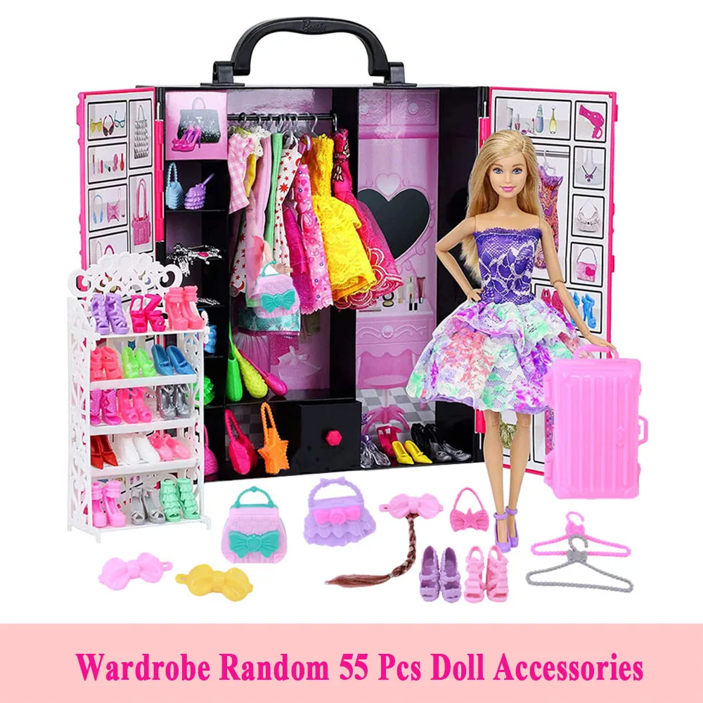 79 шт.компл. аксессуары для одежды для Барби кукольный домик мебель для Барби обувь для кукол сапоги мини платье сумочки Корона вешалки очки