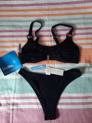 CUPSHE, ребристые черные треугольные комплекты бикини, купальник дл...