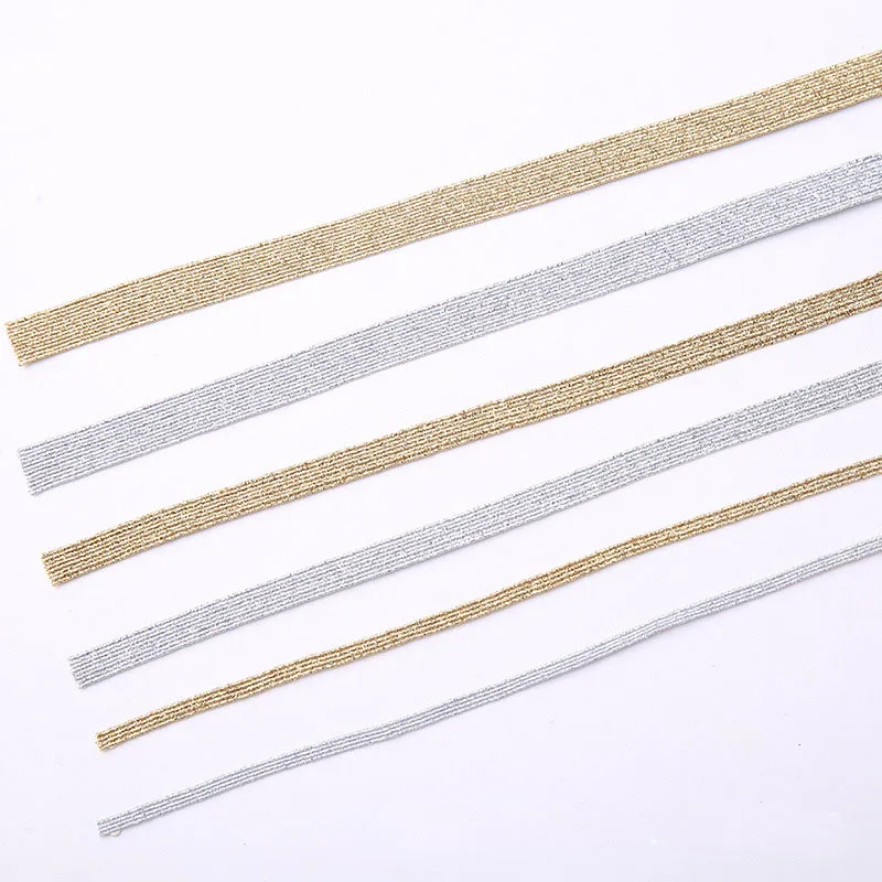 Эластичная лента для шитья, 3 мм, 6 мм, 10 мм, 5 ярдовпартия, золотистая, серебристая, повязка из спандекса эластичная, отделка, ткань для шитья, аксессуары для одежды