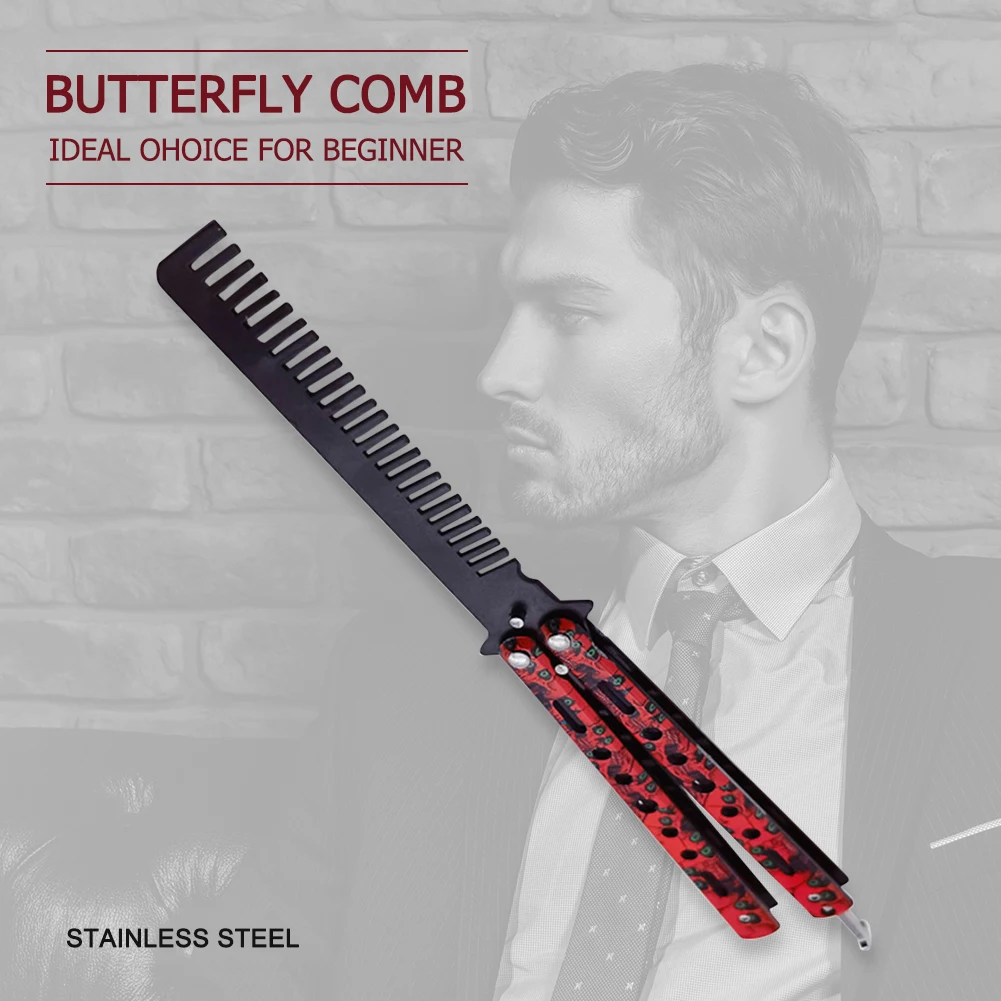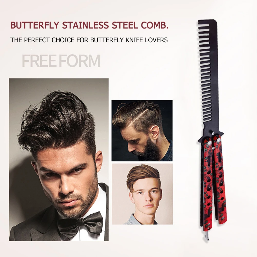 Складная регулируемая расческа из нержавеющей стали, тренировочный нож-бабочка, расческа для бороды, щетки для усов, инструмент для укладки волос