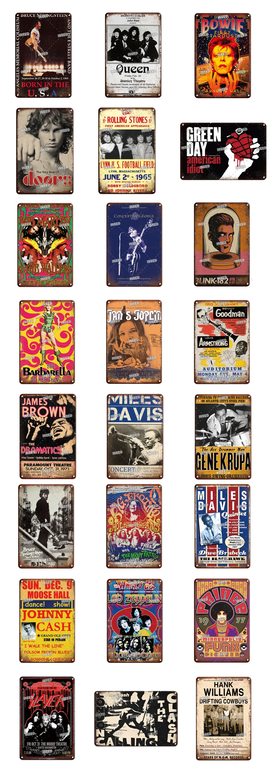Старинные ностальгические музыкальные плакаты, жестяные знаки, винт...