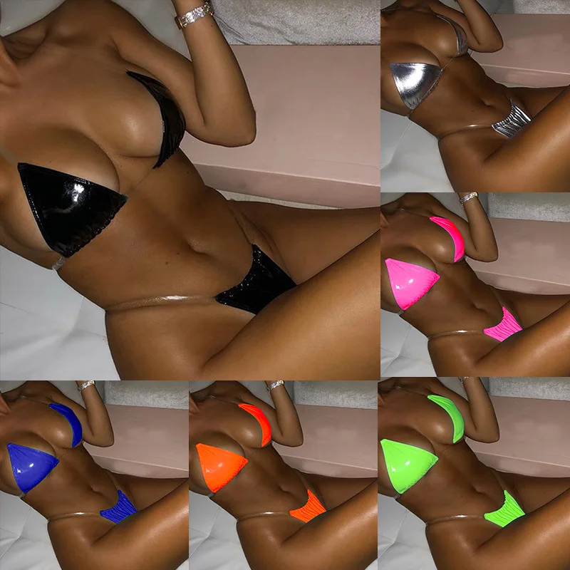 1921 2021 Новый однотонный треугольный яркий кожаное бикини раздельный купальник белый прозрачный бандажный купальник